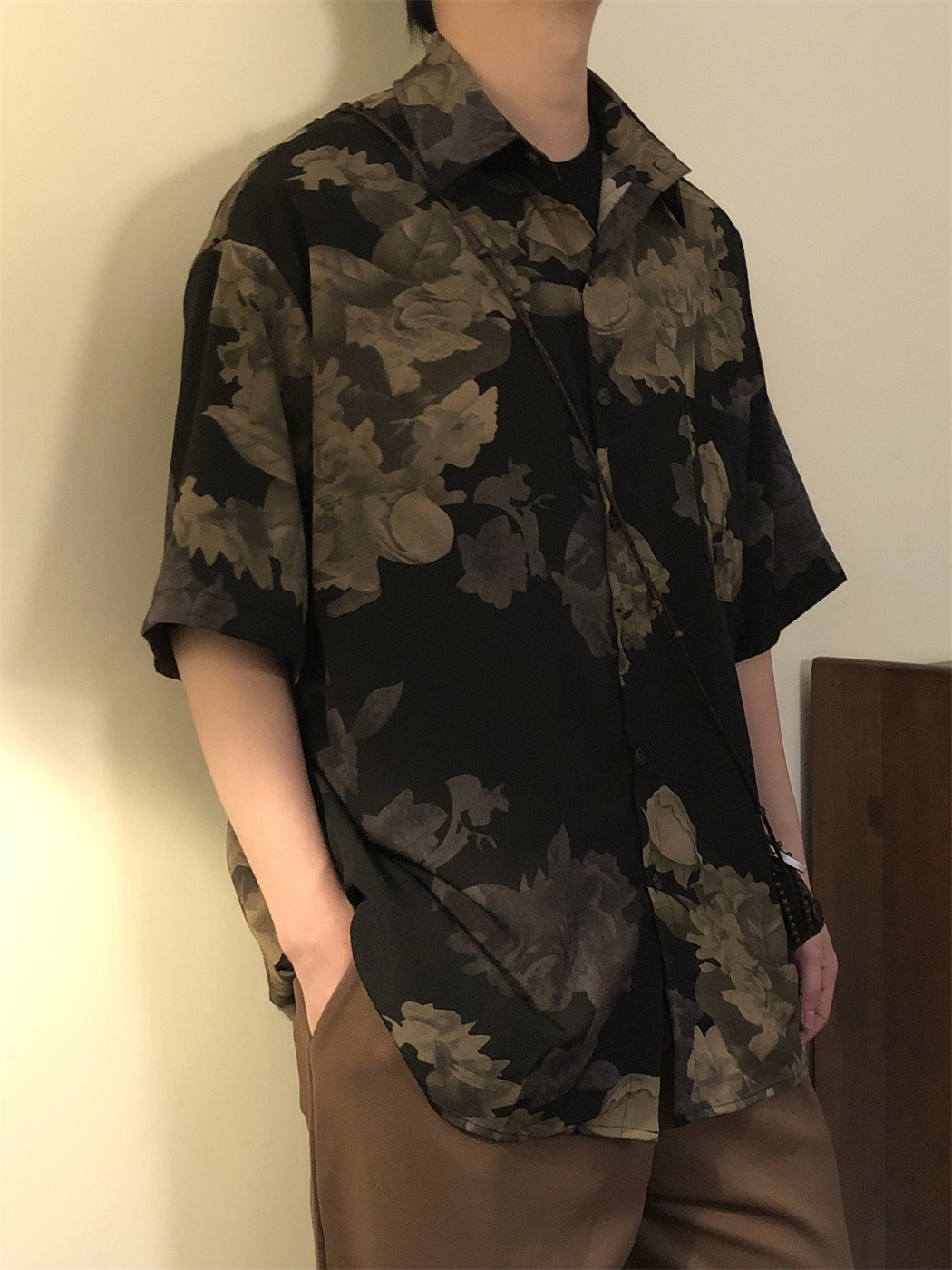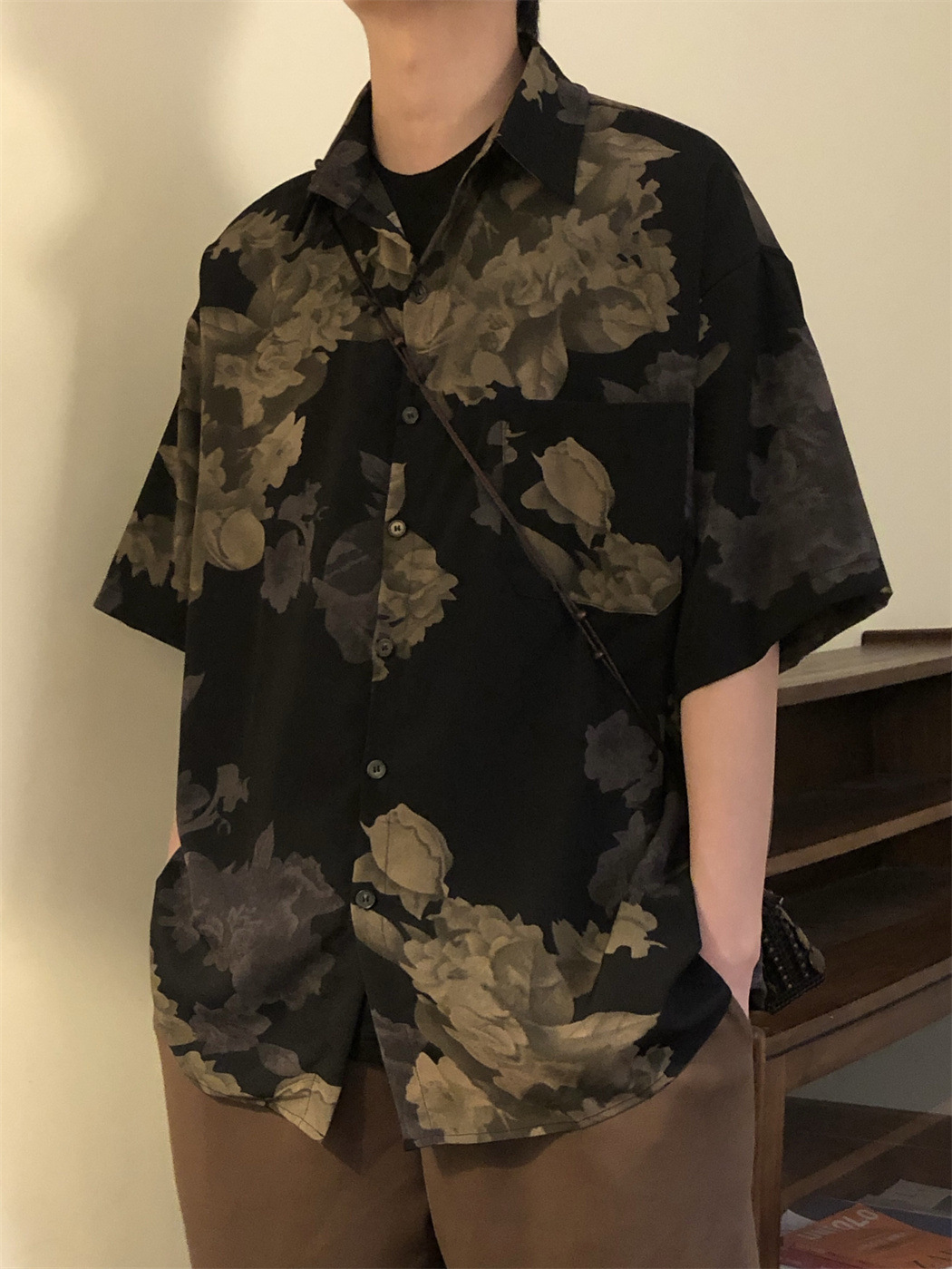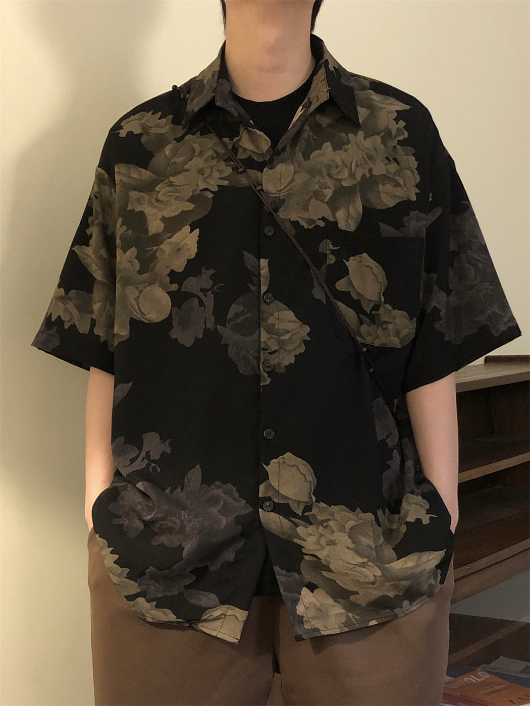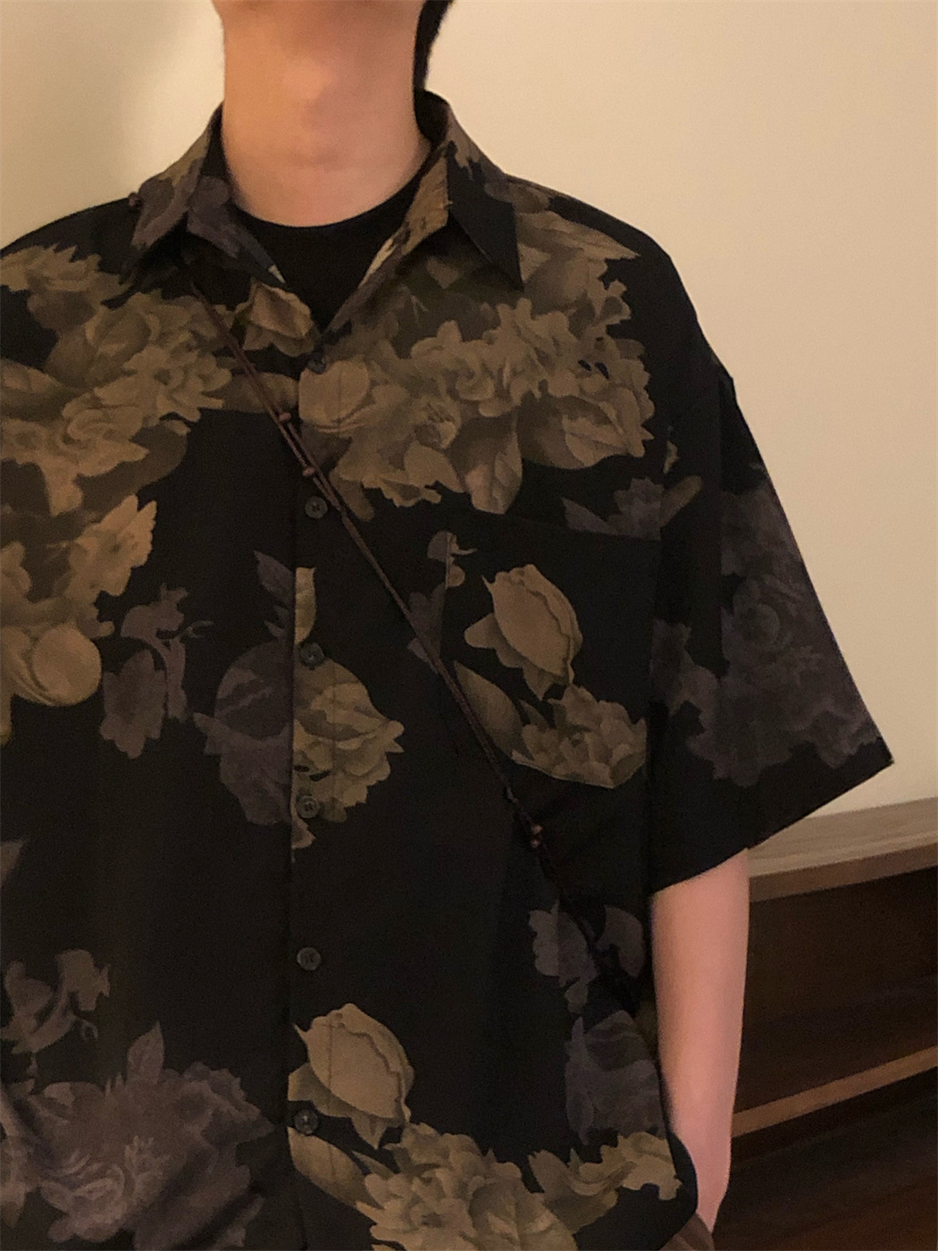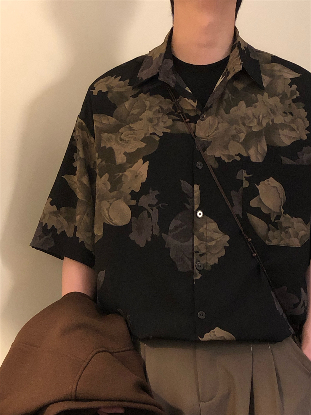 美式复古潮牌短袖花衬衫男夏季新款新中式港味高级感痞帅上衣