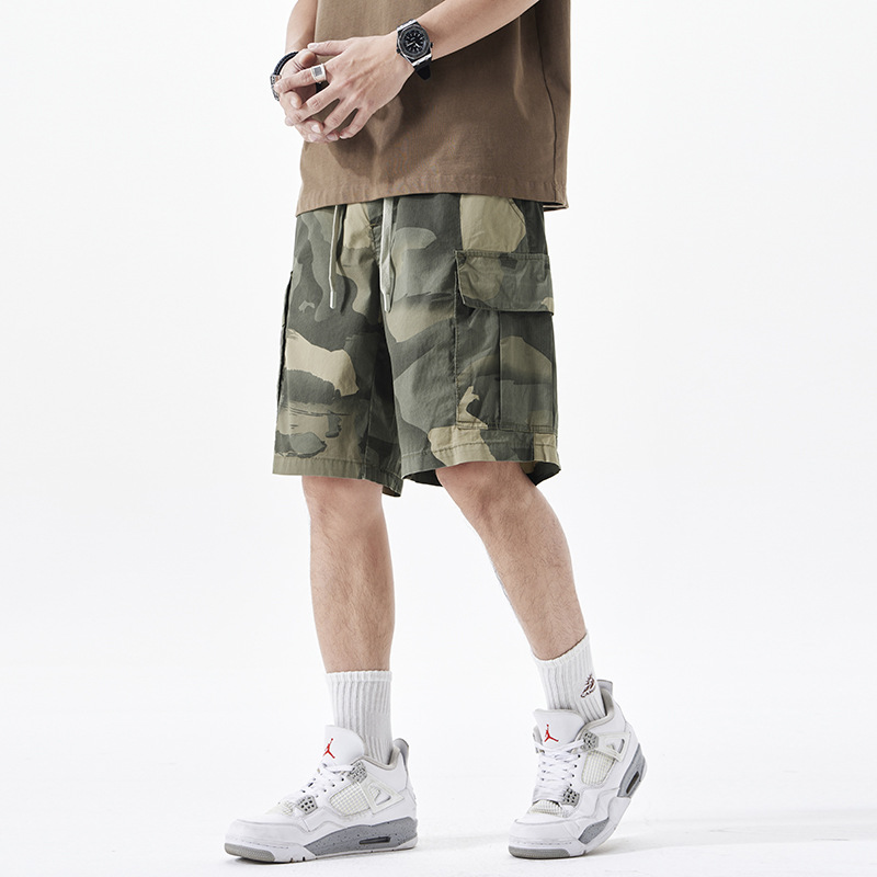 夏季薄款迷彩工装短裤男宽松潮牌ins五分休闲裤大码胖子马裤中裤