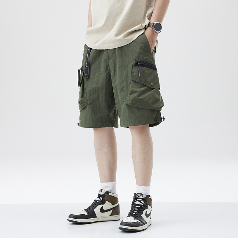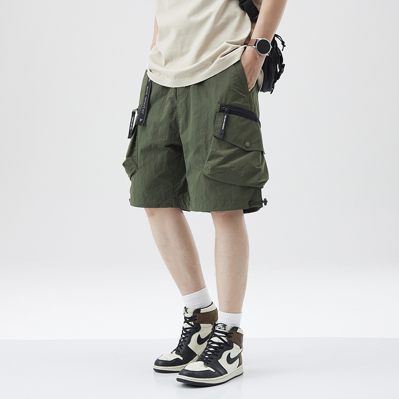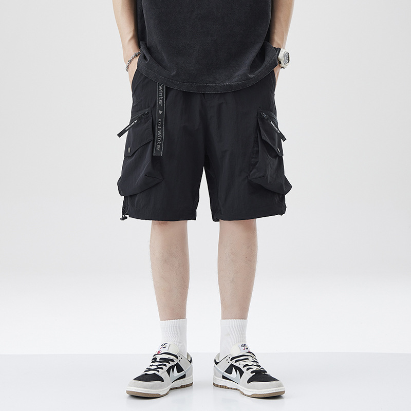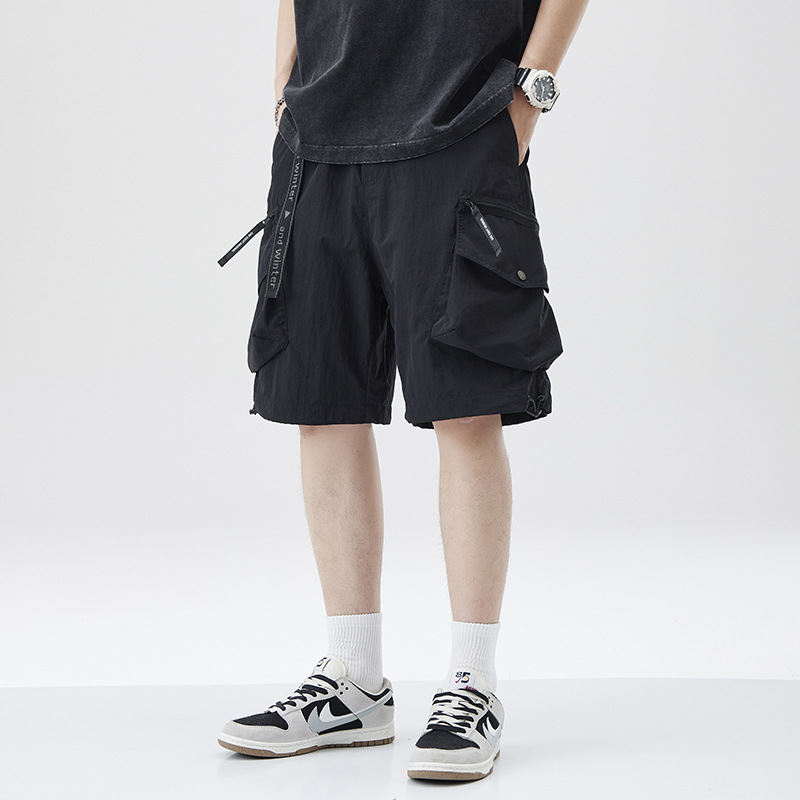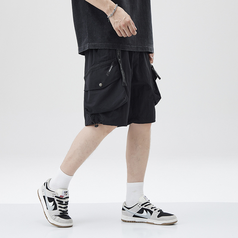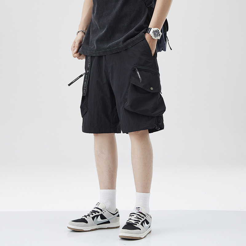 美式多口袋机能工装短裤男夏季户外宽松凉感时尚黑色五分休闲裤潮