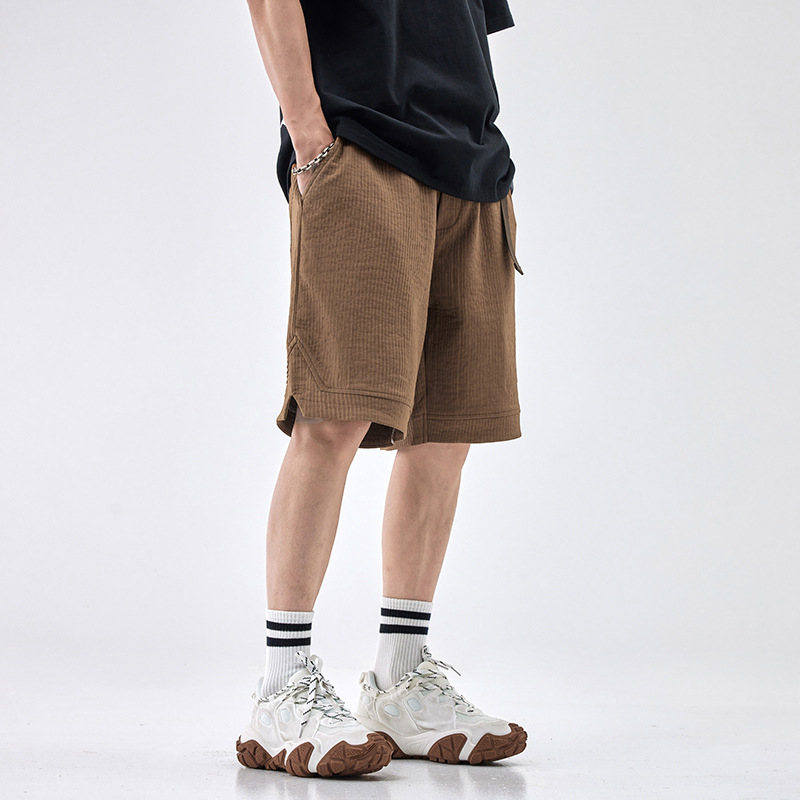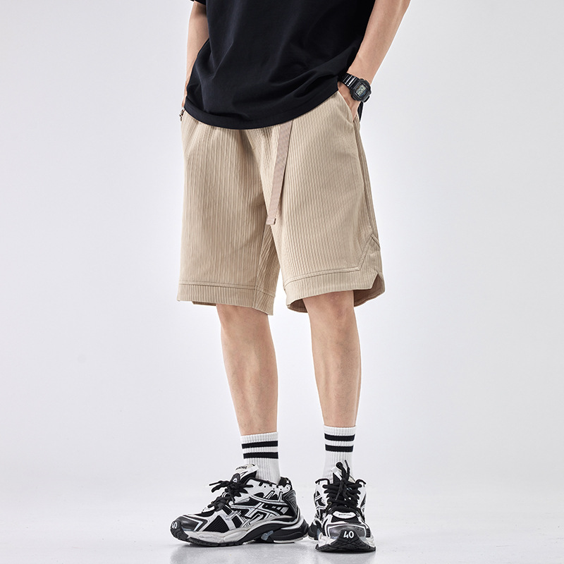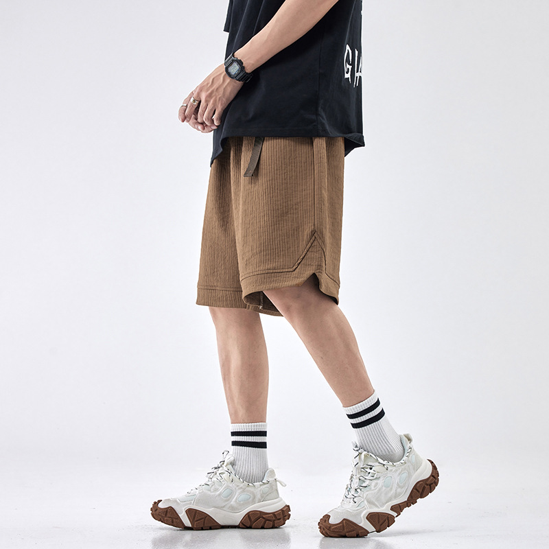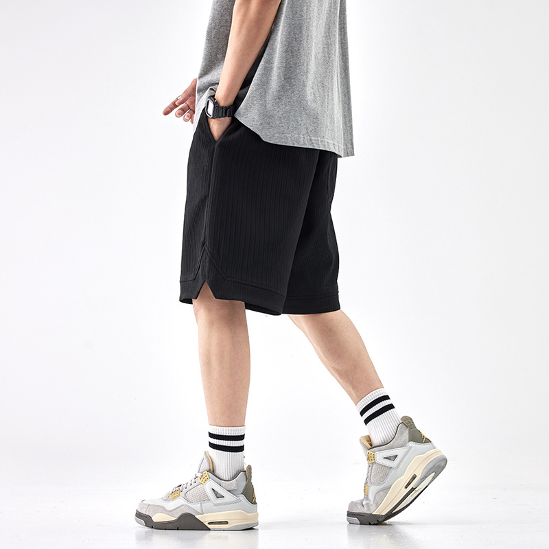 肌理感冰丝裤子夏季薄款高级感休闲短裤男宽松大码五分裤黑色卫裤