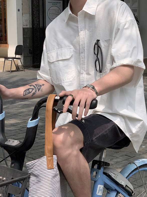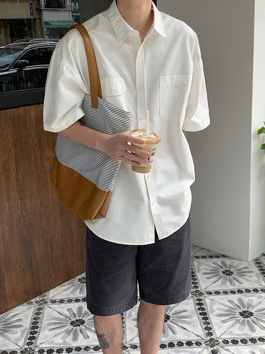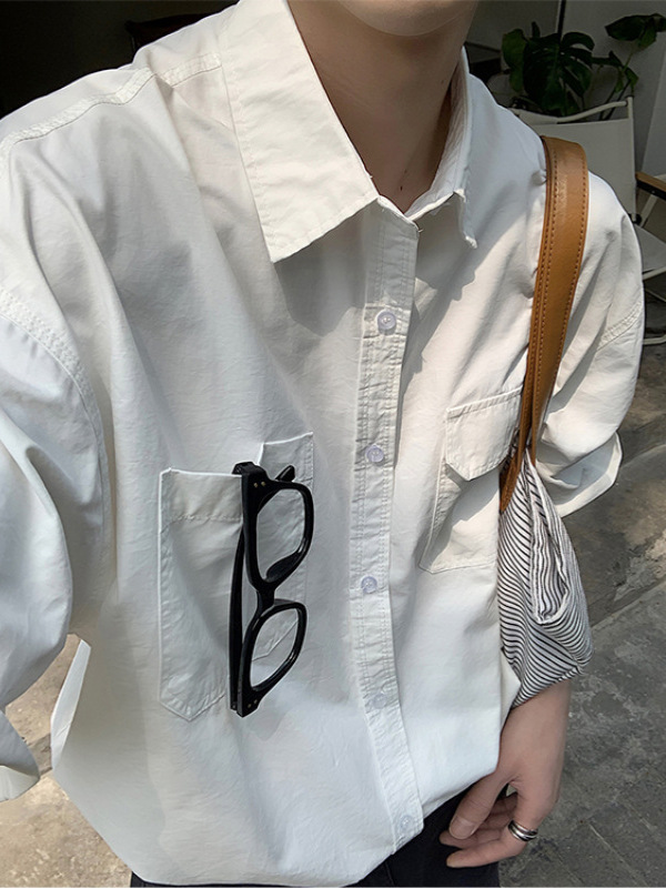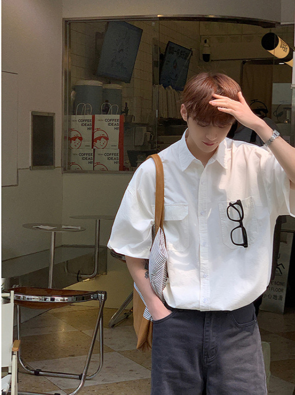 纯白衬衫短袖少年感男夏季韩版休闲百搭日系港风高品质新款潮