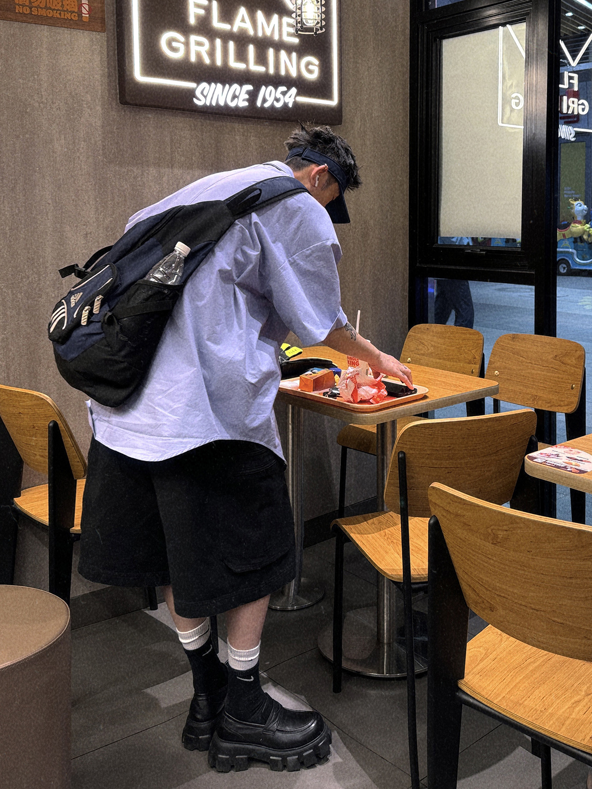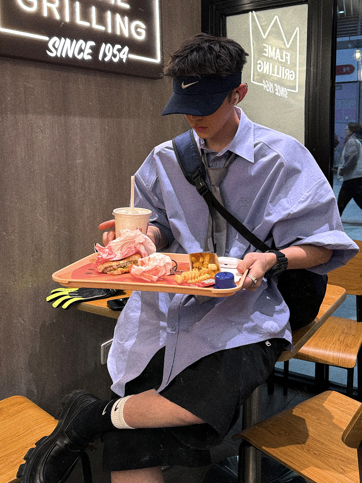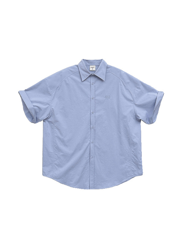 松弛少年感复古学院风刺绣短袖衬衫男夏季新款宽肩廓形大衬衣外套