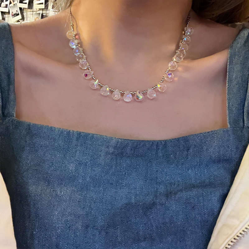 简约百搭透明水晶吊坠项链春夏气质清新锁骨链轻奢高级感短款颈链