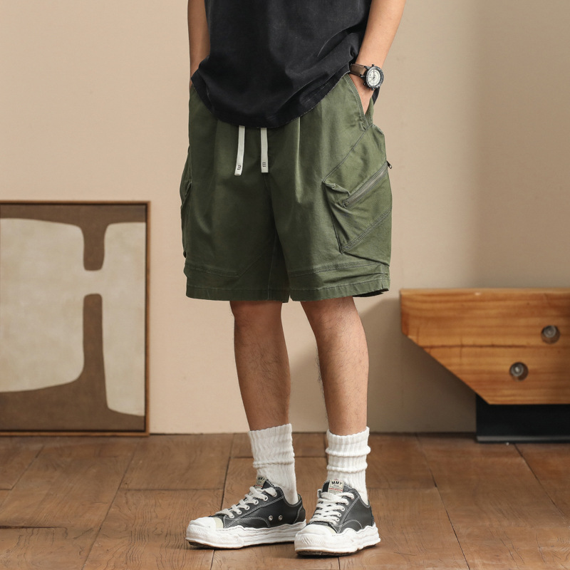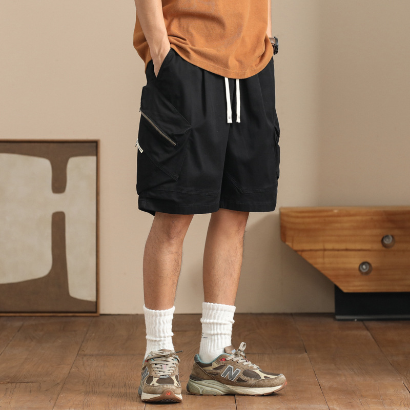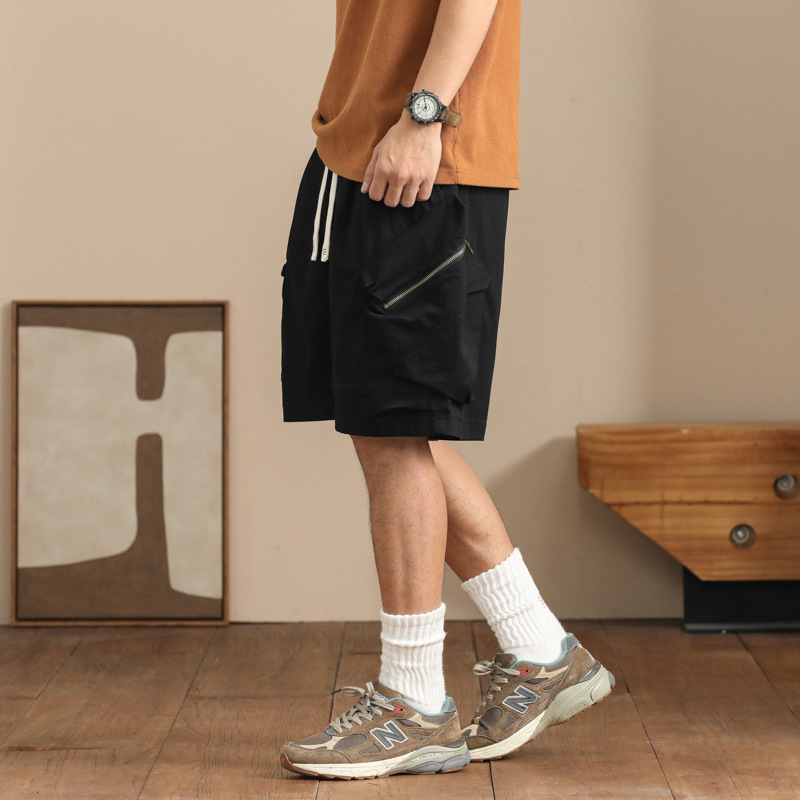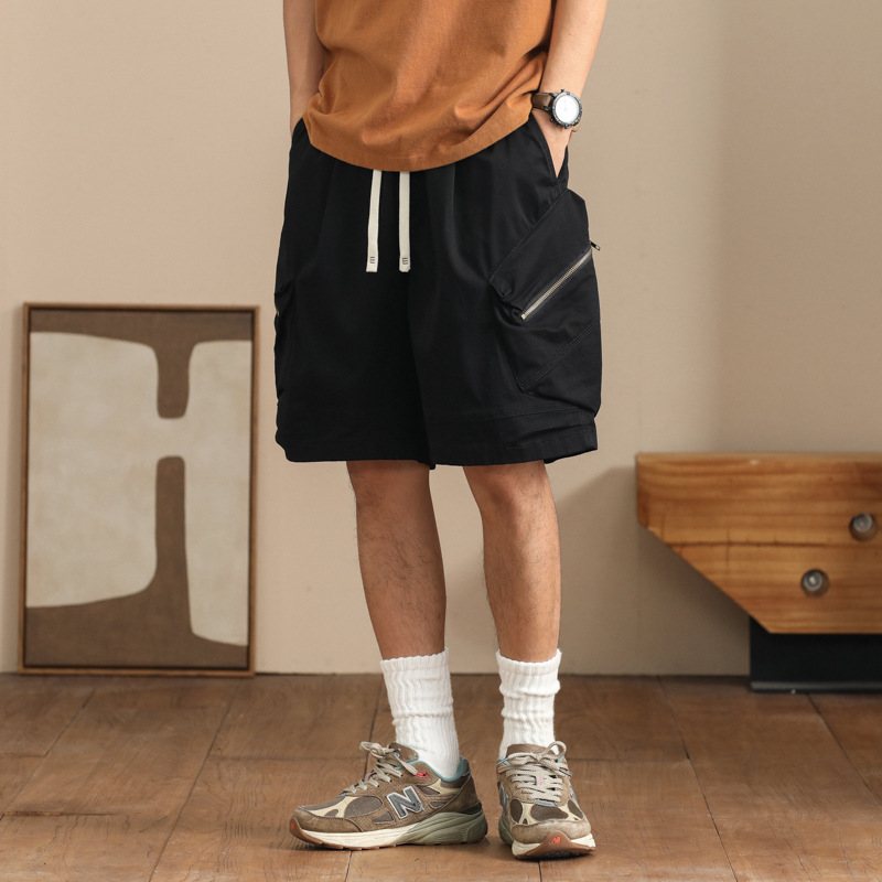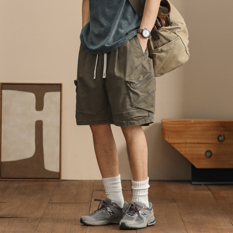 冰丝工装短裤男款夏季薄款宽松透气五分中裤日系潮牌纯色休闲裤子