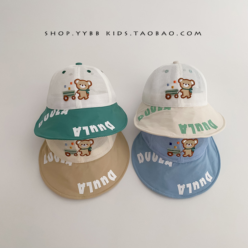 宝宝帽子夏季薄款透气网眼大檐遮阳防晒帽男女童可爱鸭舌棒球帽潮
