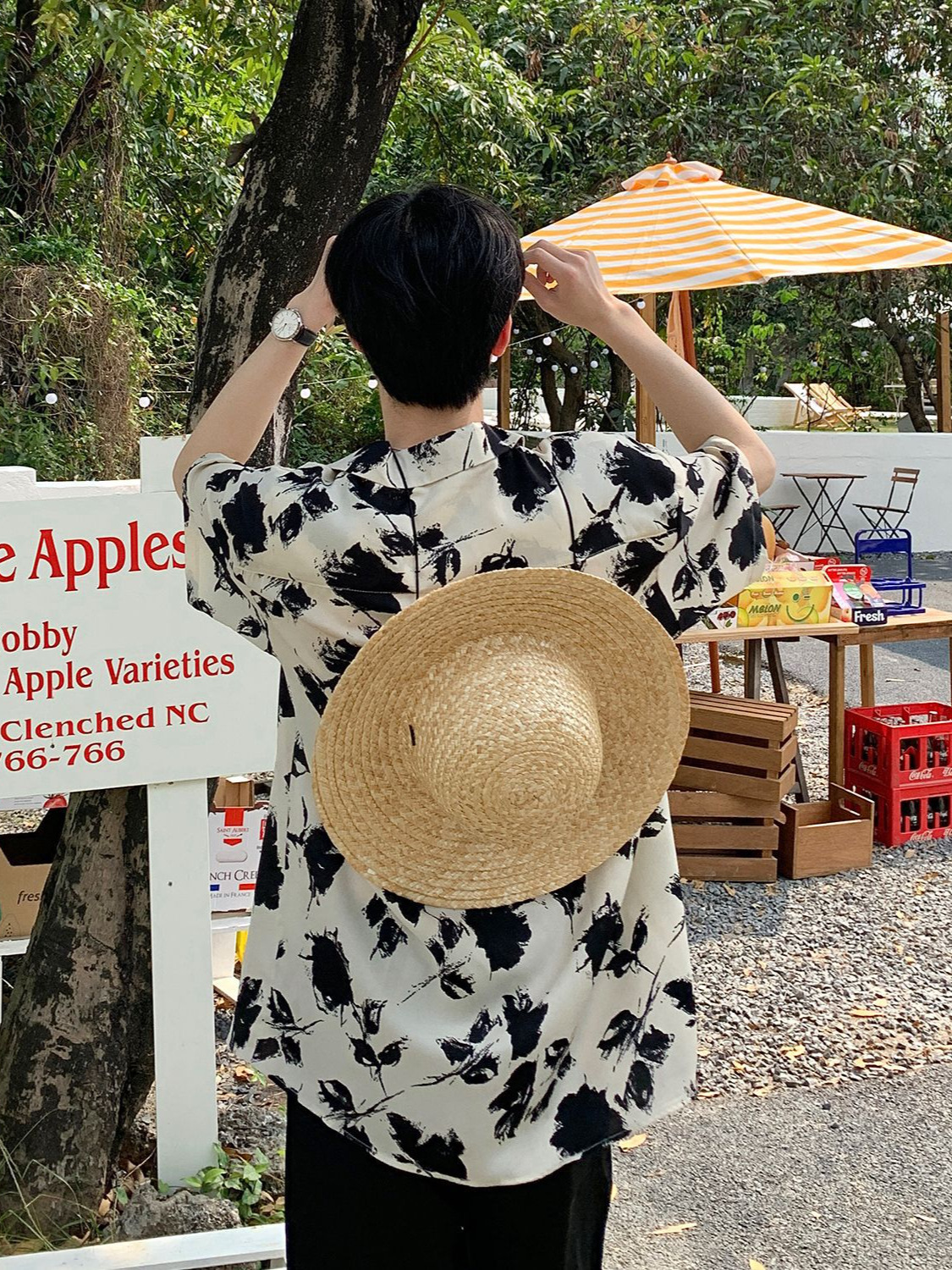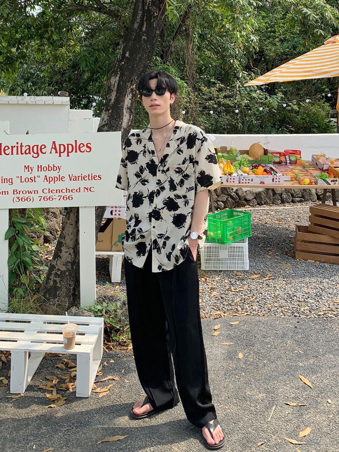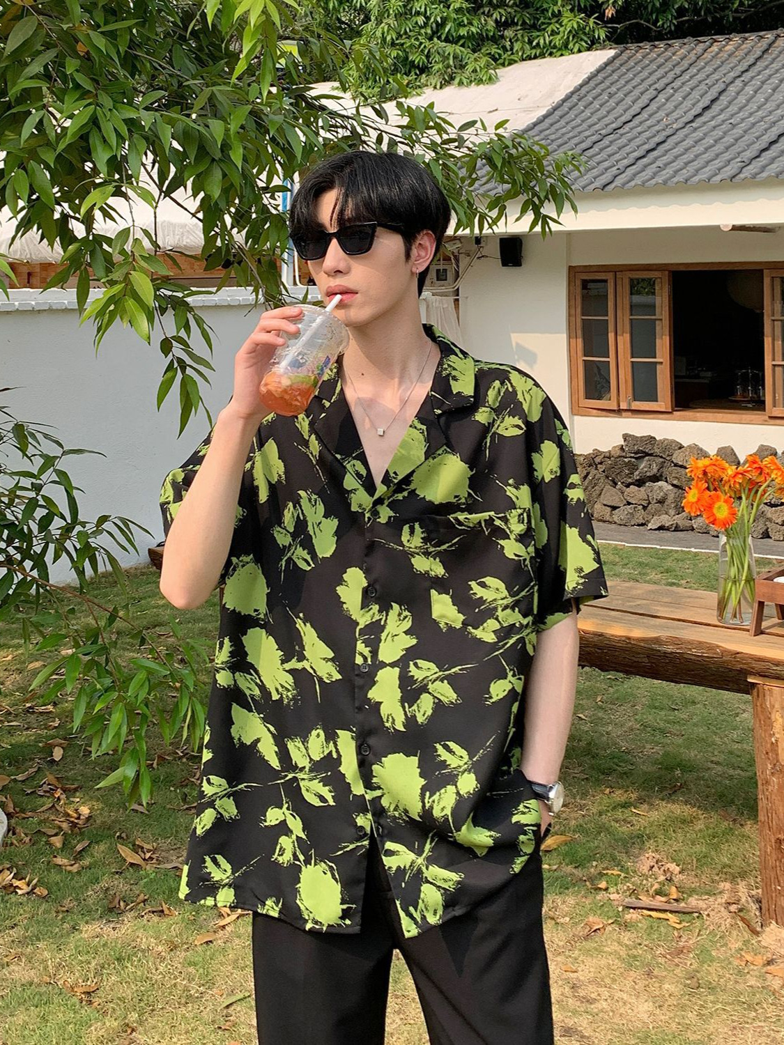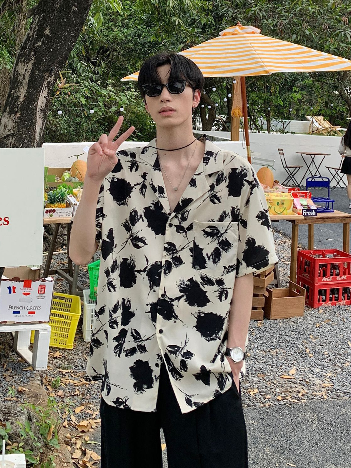 度假风短袖花衬衫男士夏季新款韩系复古衬衣宽松休闲情侣潮流上衣