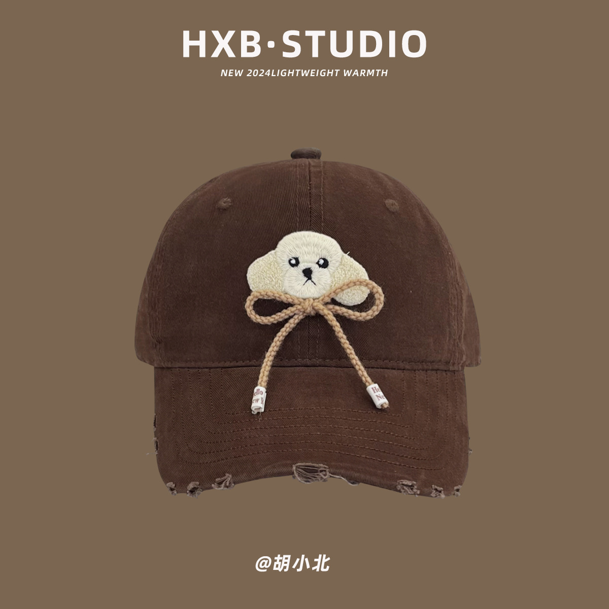 日系可爱小狗蝴蝶结棒球帽女春夏韩版做旧破洞软顶鸭舌帽显脸小潮