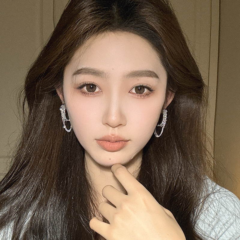 轻奢高级感C形链条流苏锆石耳圈独特小众设计感耳环气质夸张耳饰