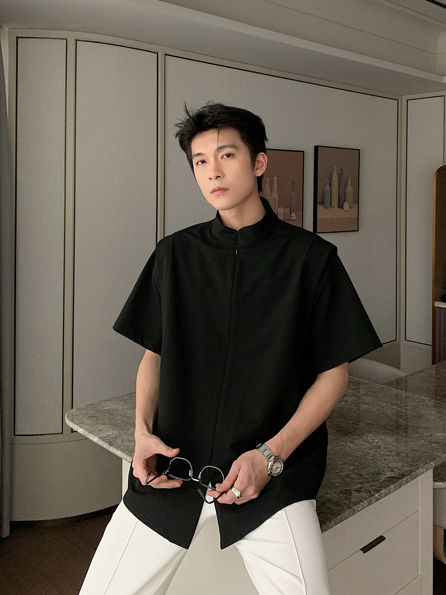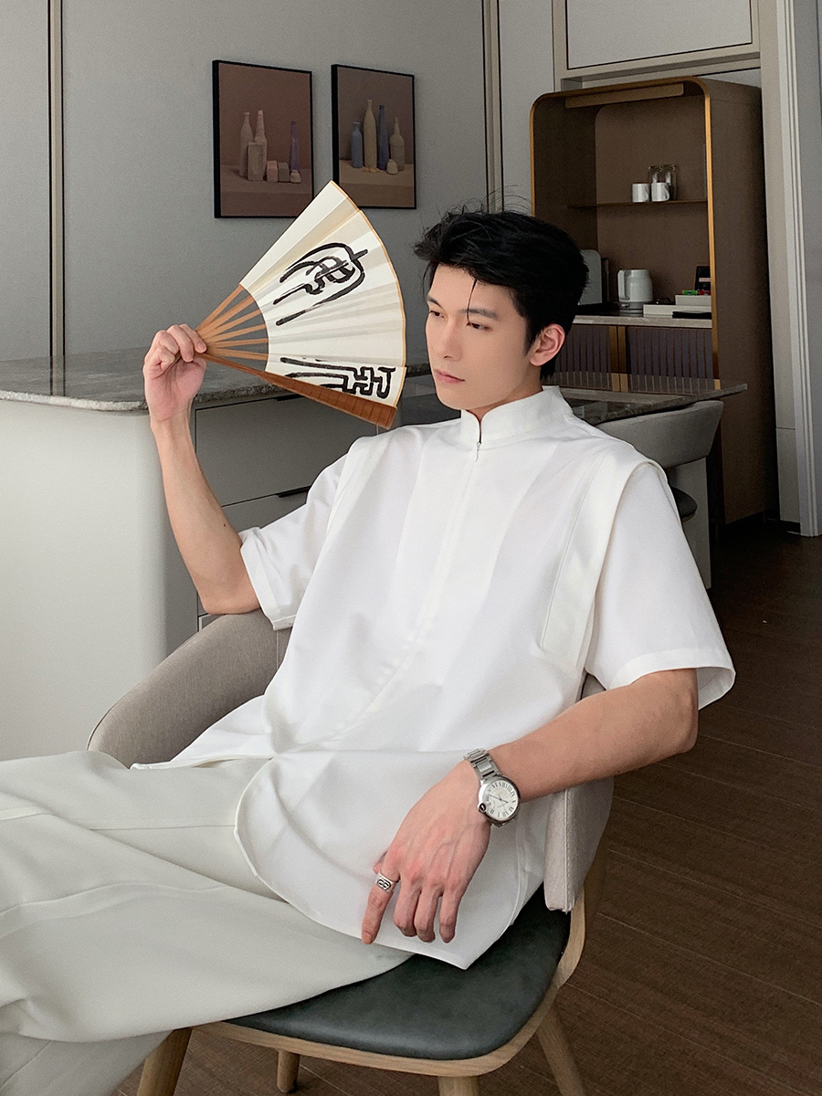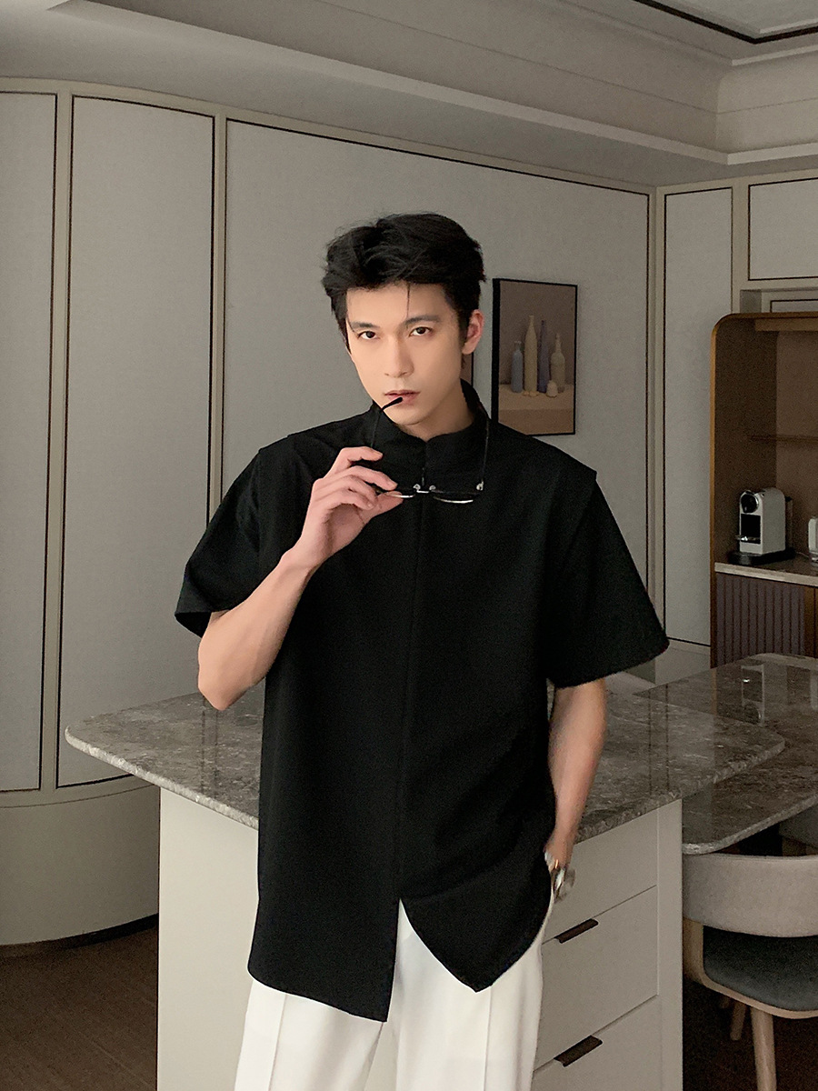 新中式衬衫男装夏季新款宽松oversize衬衣短袖男港风宽松休闲上衣