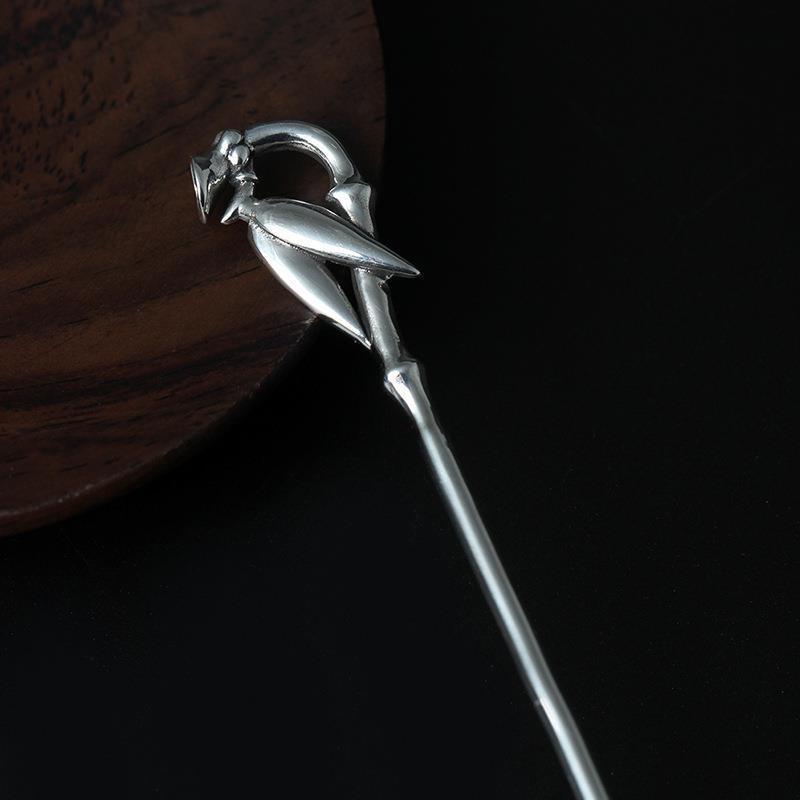纯银发簪古典头饰品女宫廷女款竹子发钗步摇气质民族风发叉礼