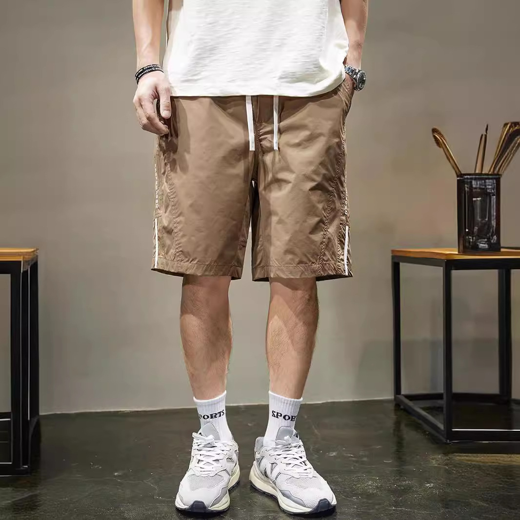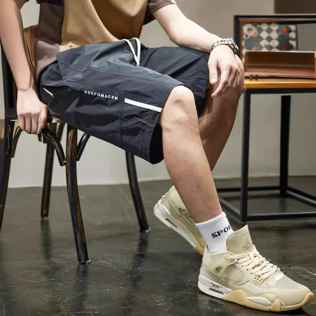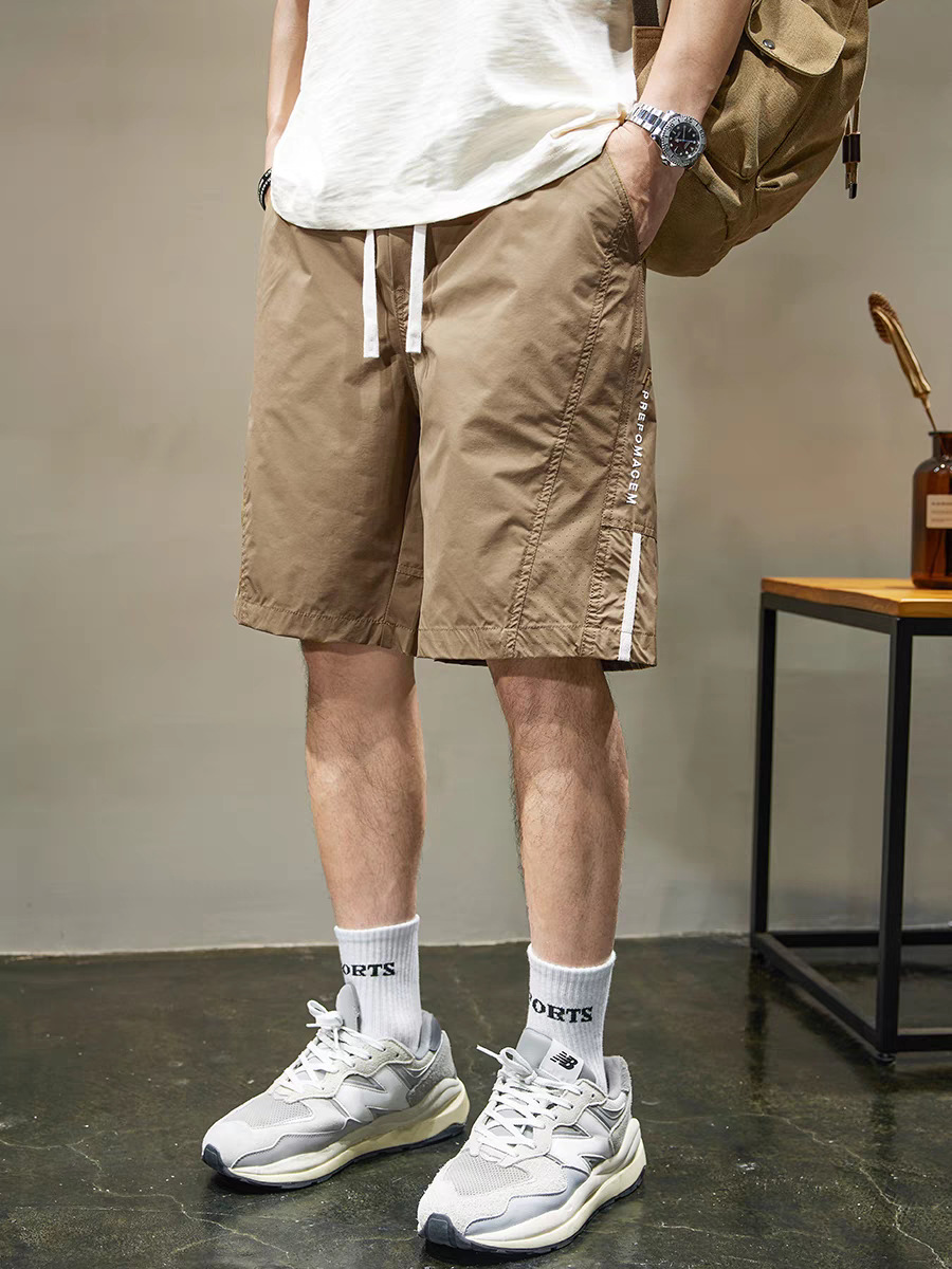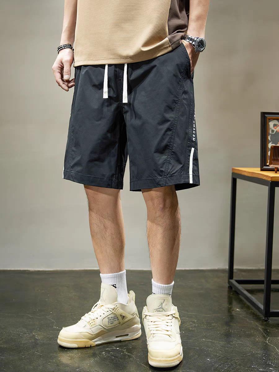 条纹拼接休闲短裤男士速干运动中裤夏季新款宽松直筒五分裤男