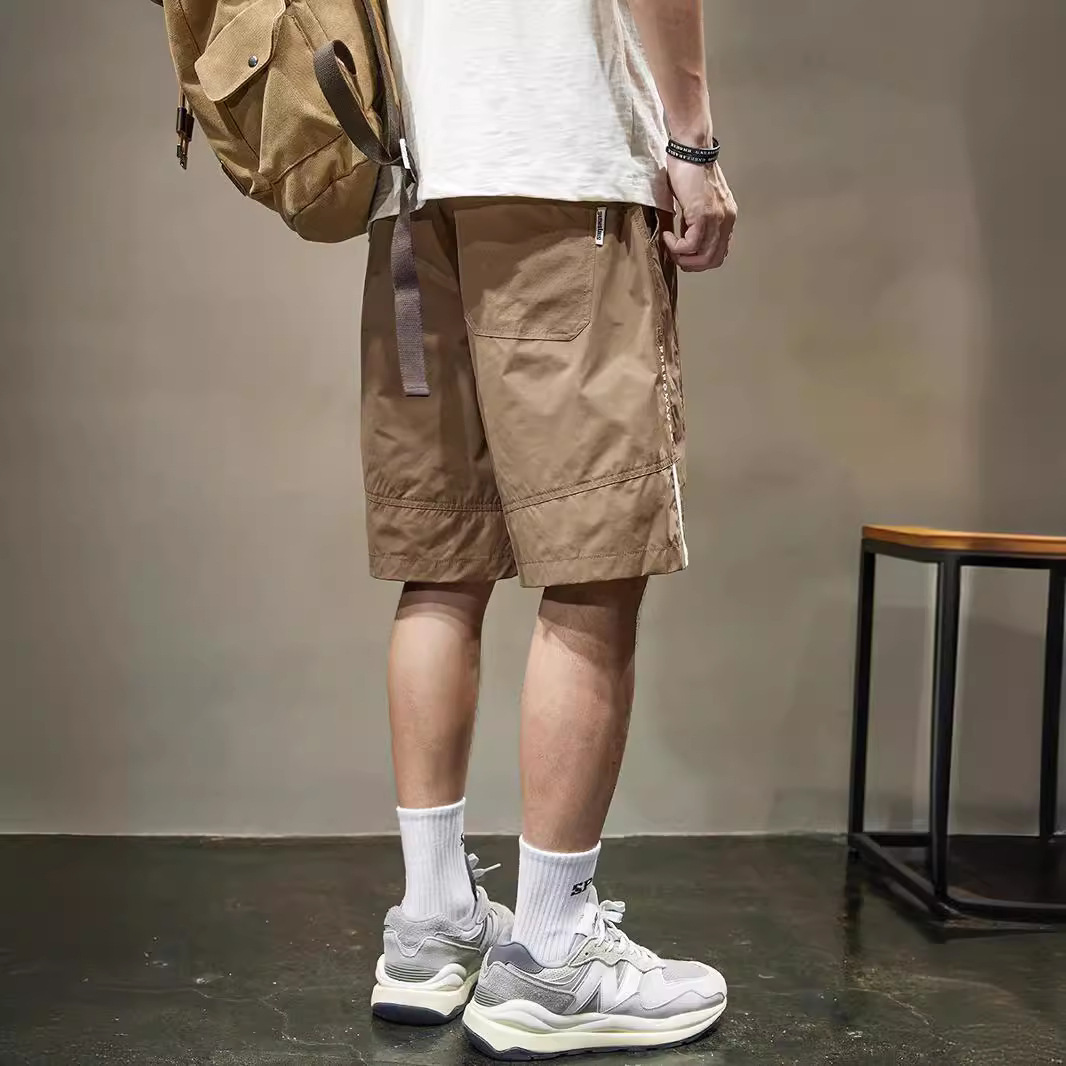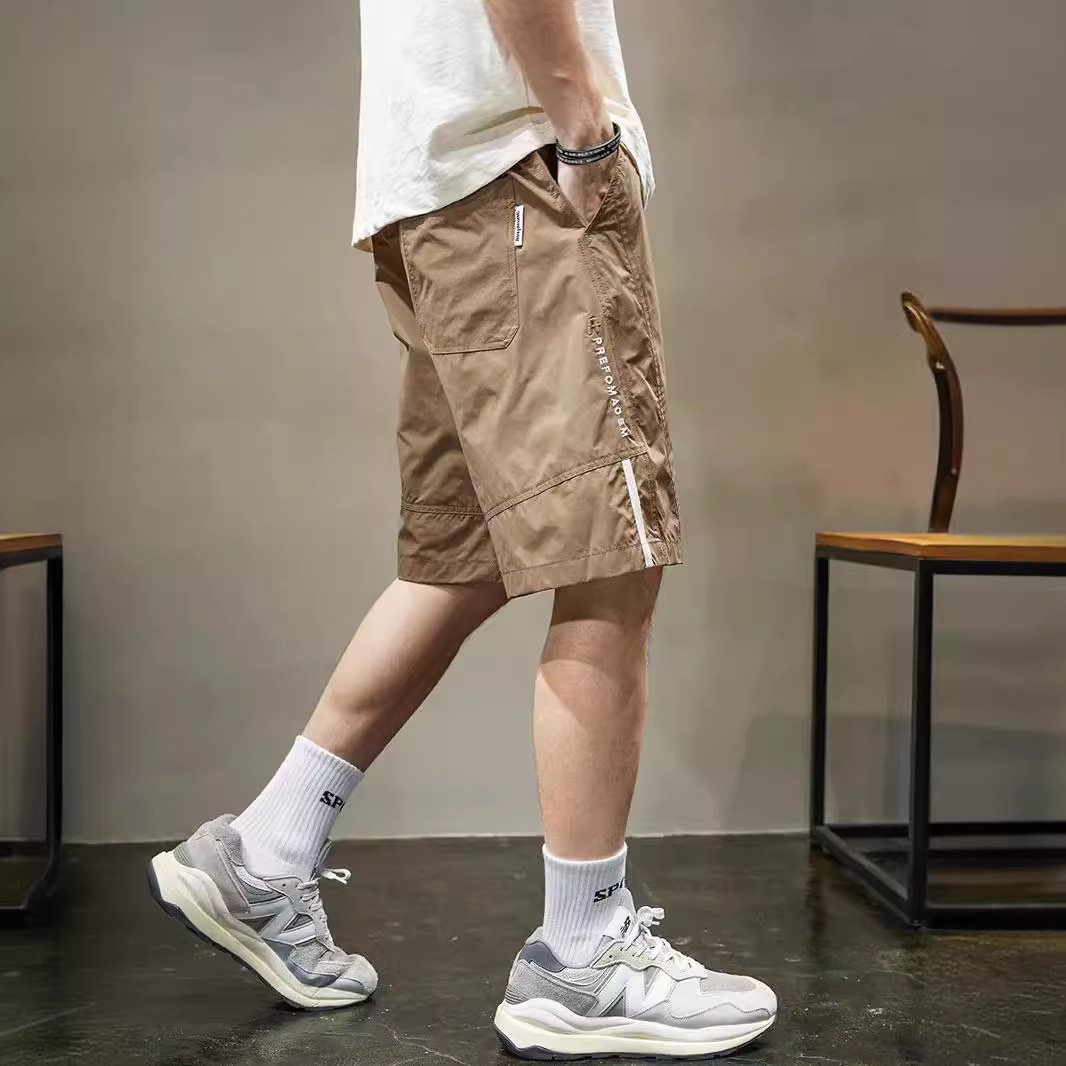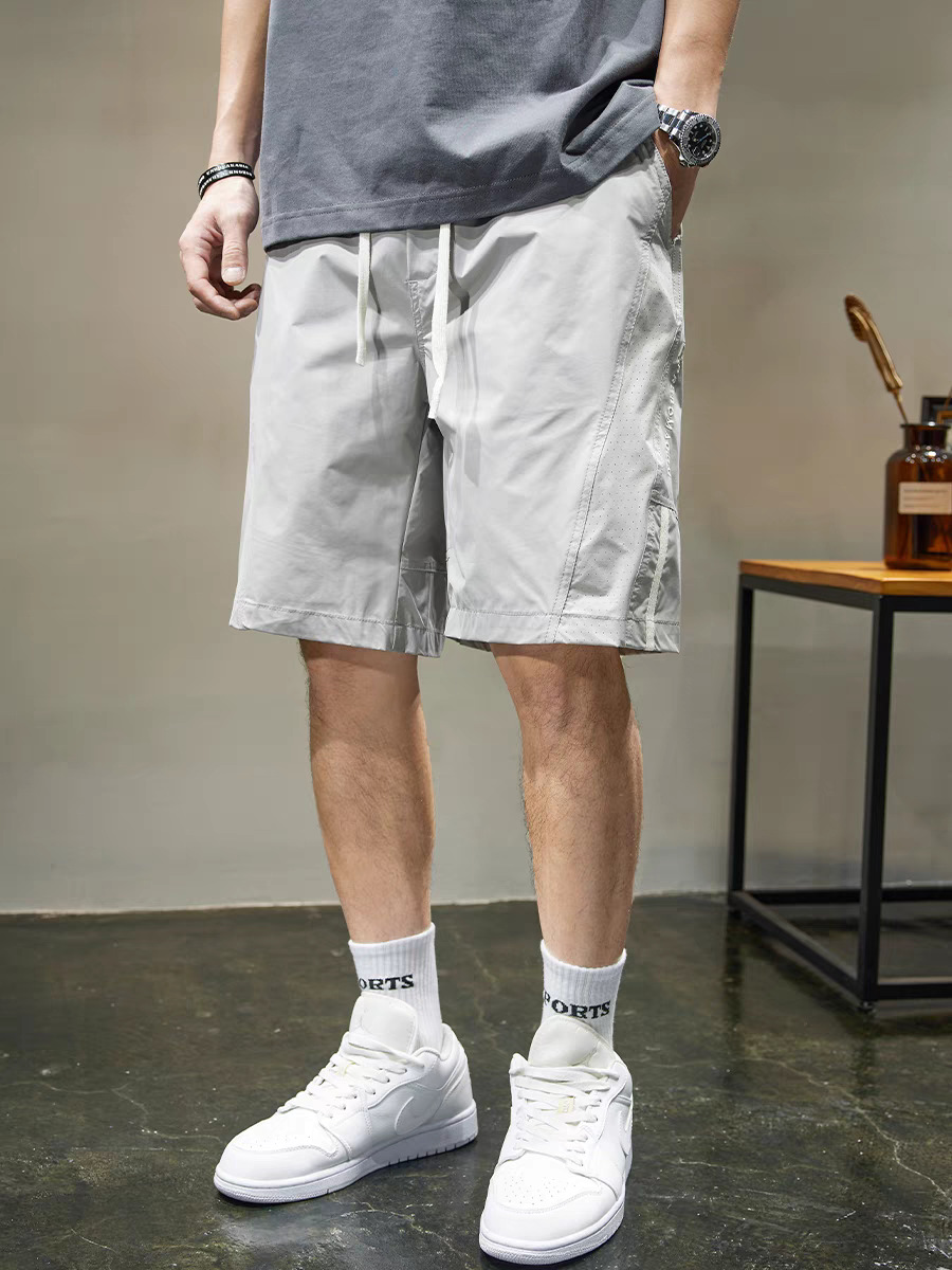 条纹拼接休闲短裤男士速干运动中裤夏季新款宽松直筒五分裤男