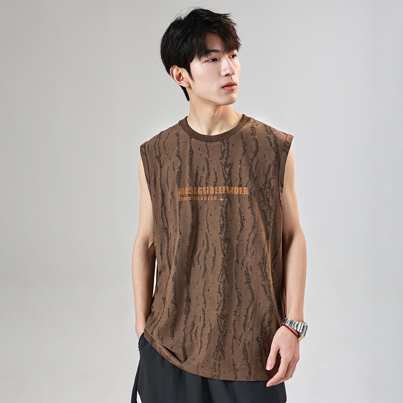 美式蜡染剪花肌理感无袖背心男夏季潮流宽松大码男士街头坎肩上衣