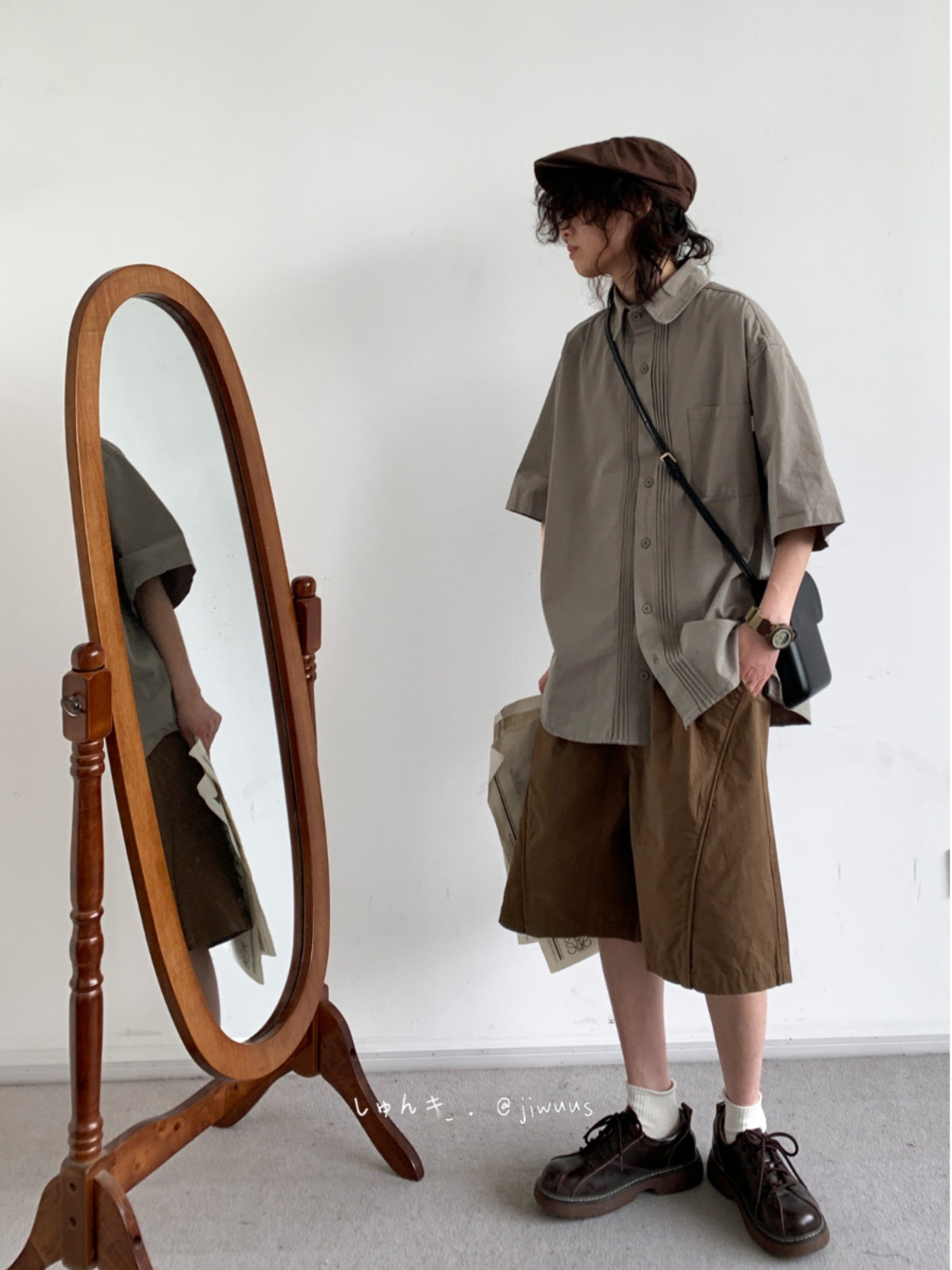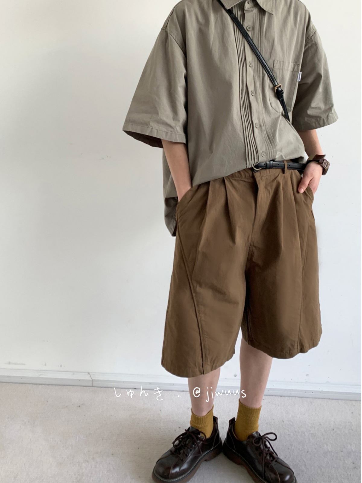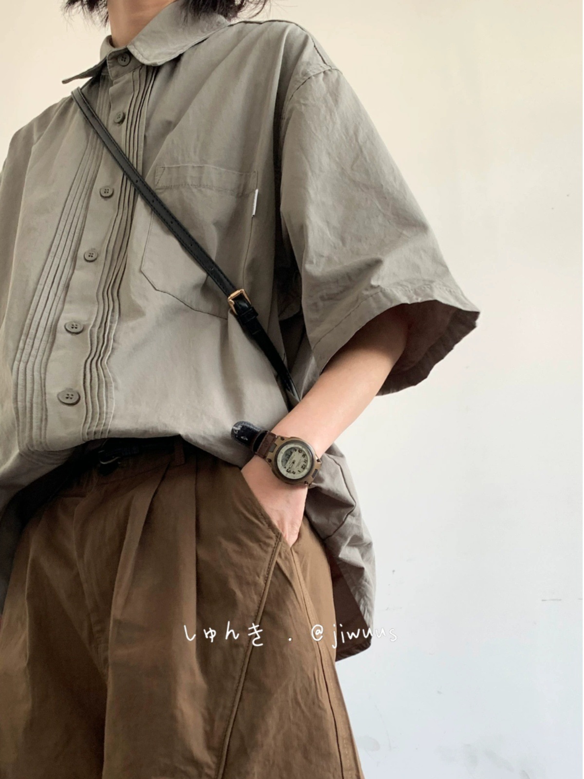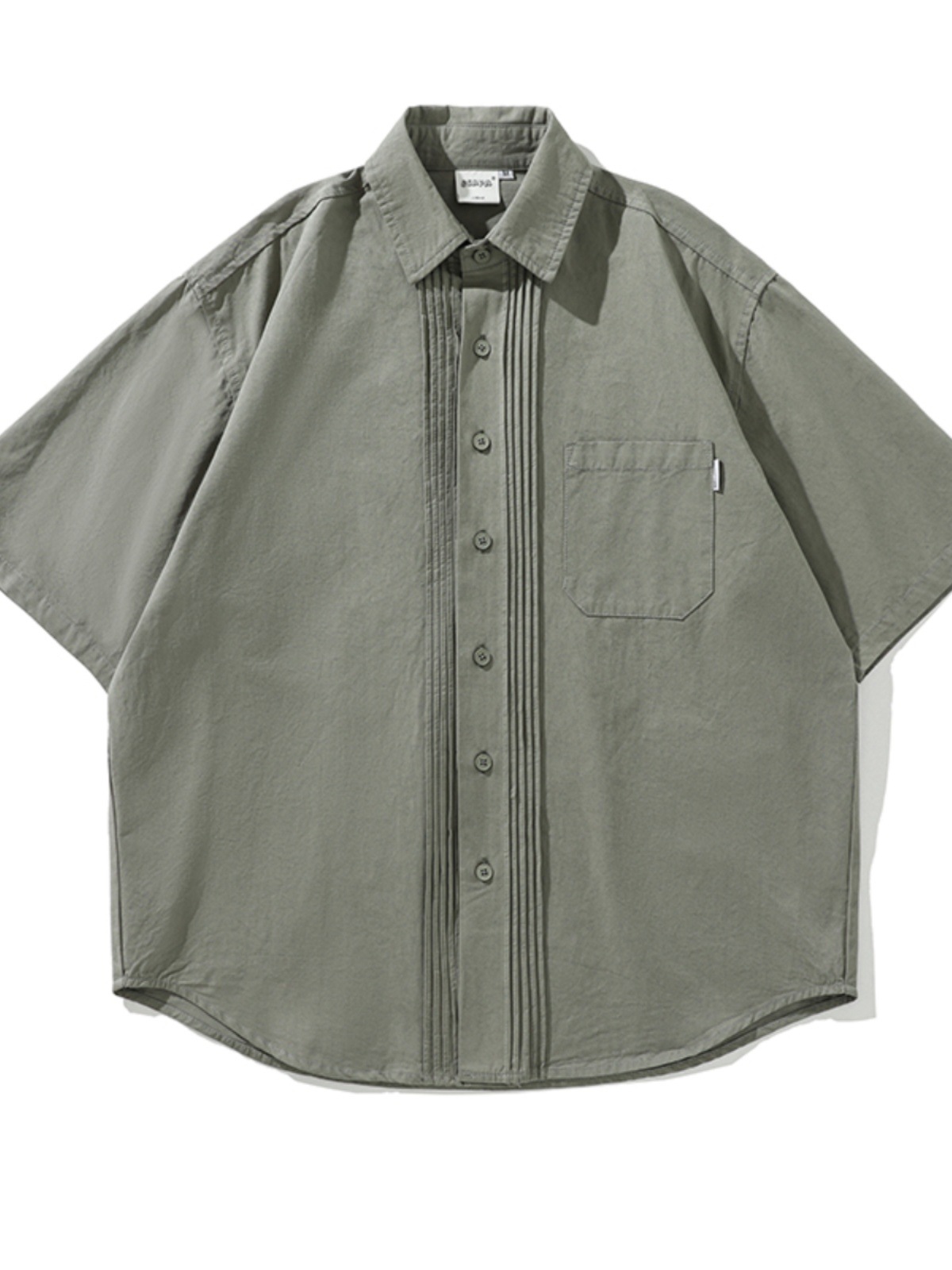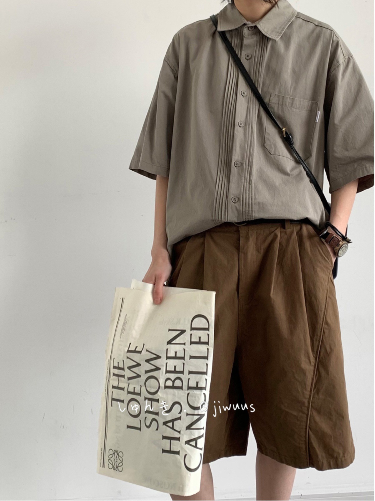 日系复古小众短袖衬衫男夏季新款设计感廓形古着衬衣外套上衣