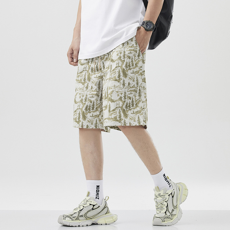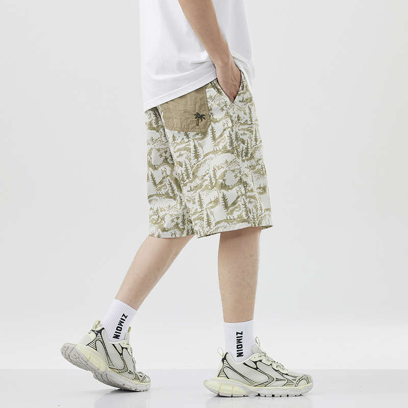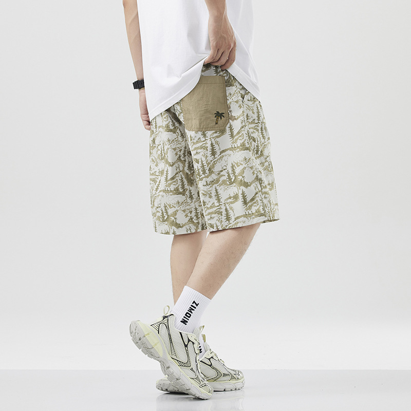 美式潮牌刺绣沙滩短裤男士新款撞色拼接宽松大码速干休闲五分裤子