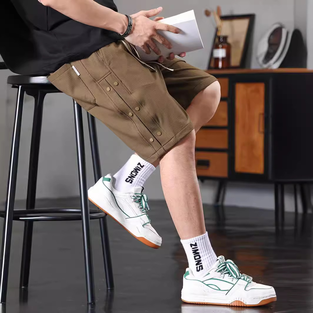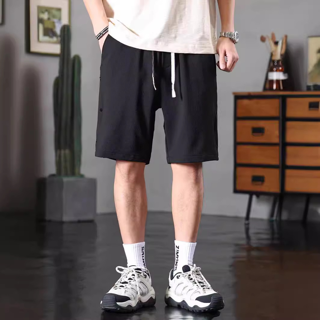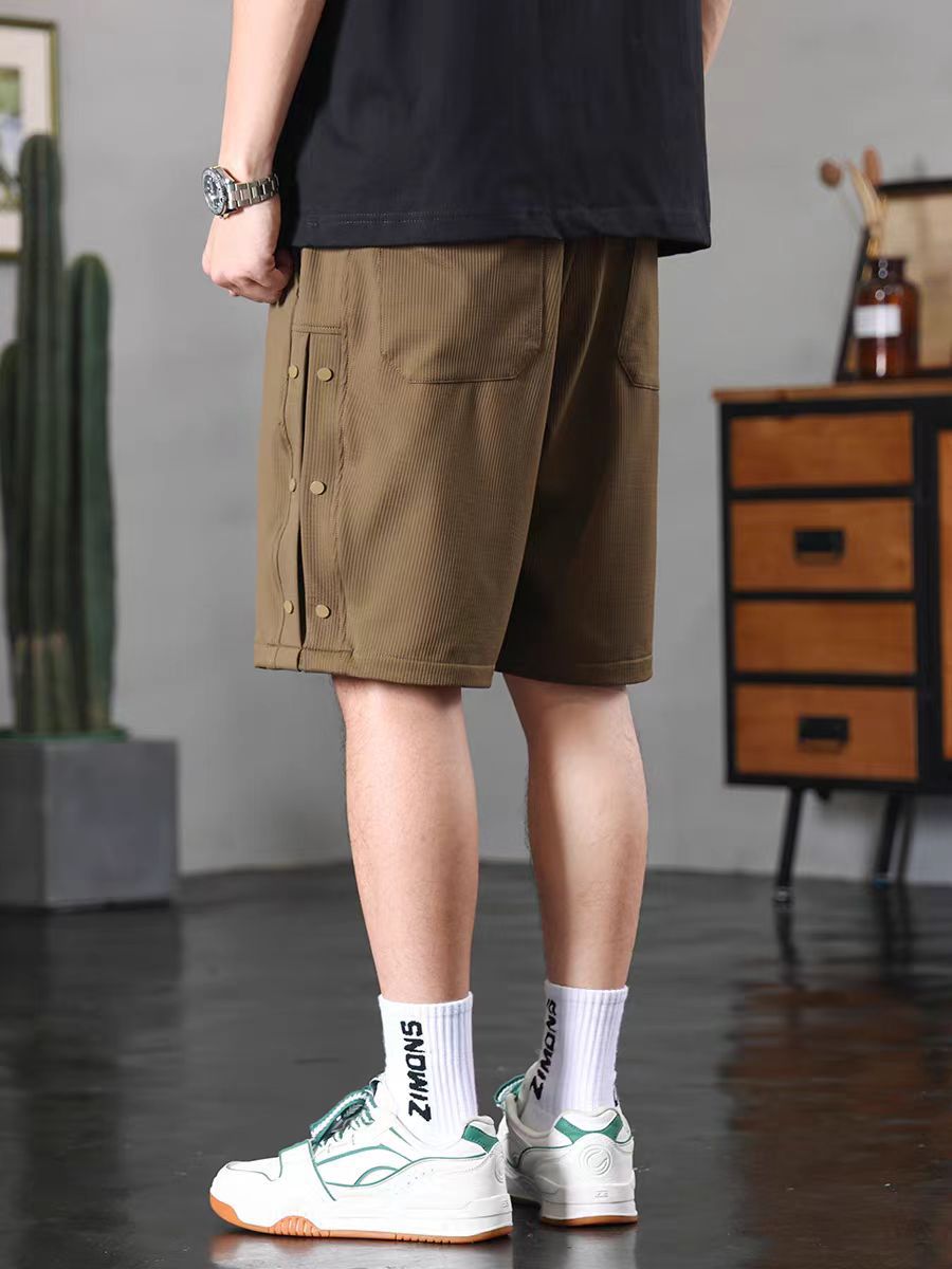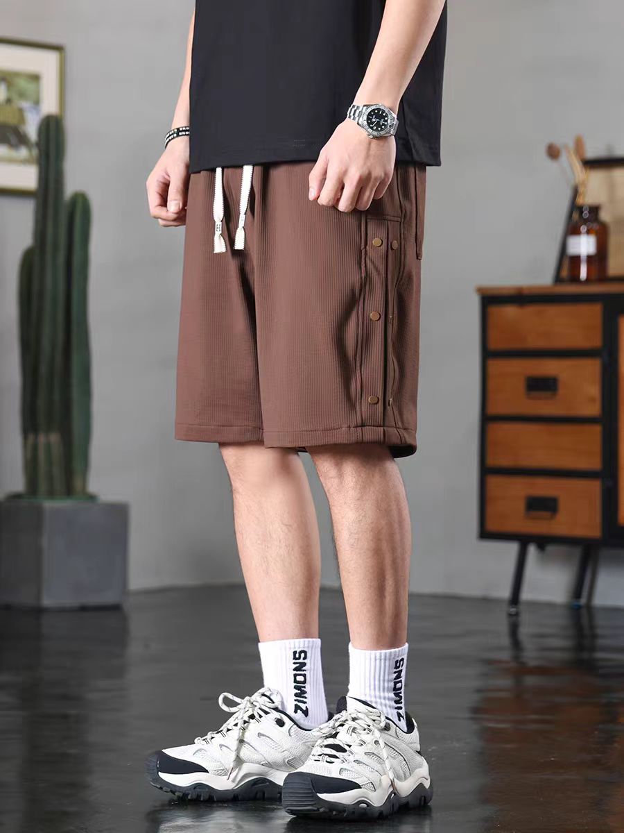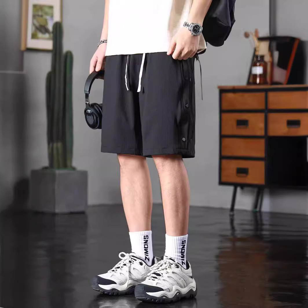设计感排扣休闲短裤男士夏季冰丝针织运动卫裤宽松直筒五分中裤男
