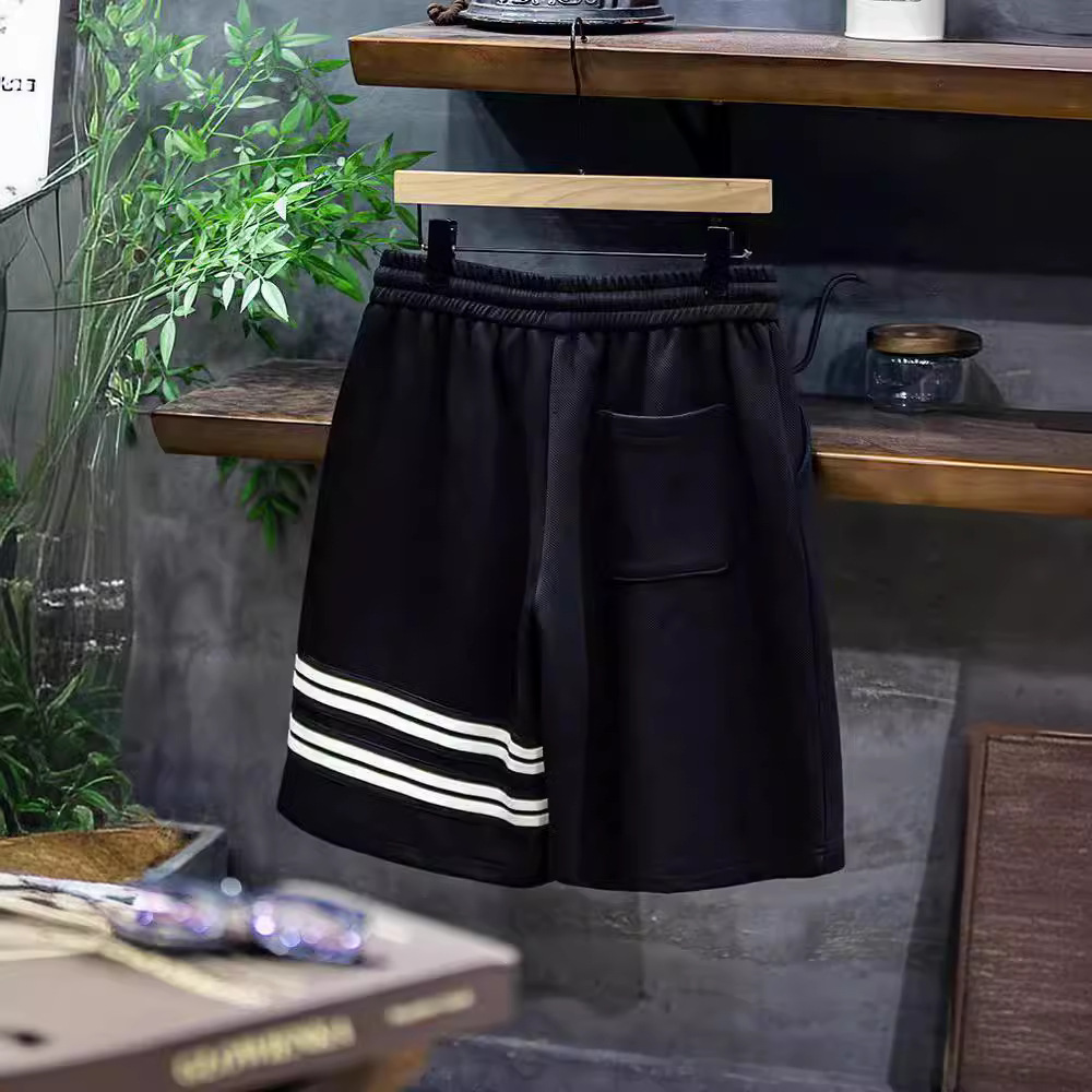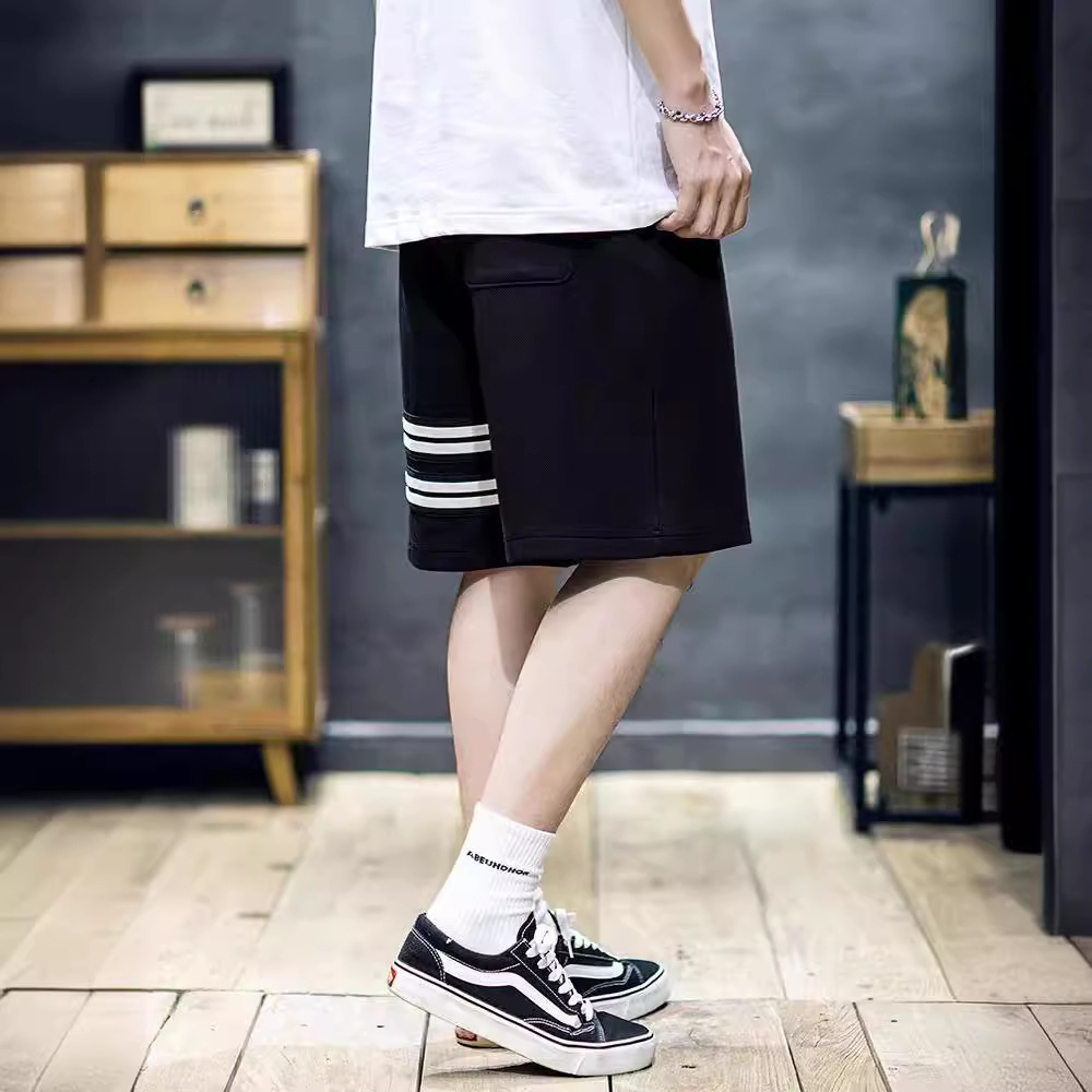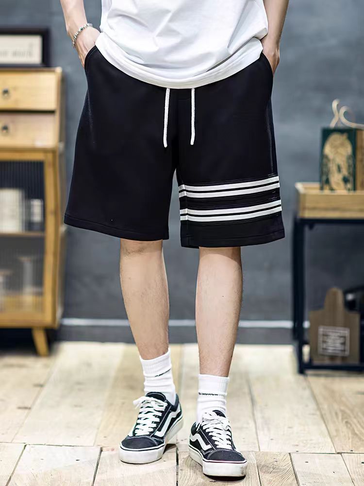 美式条纹运动短裤男夏季宽松潮牌大码休闲五分裤男士直筒裤子男裤
