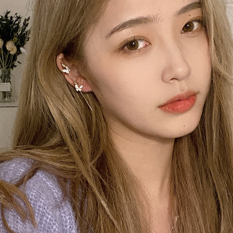 气质镶钻蝴蝶穿刺耳环 韩国个性冷淡风单只耳钉ins网红耳坠耳饰品