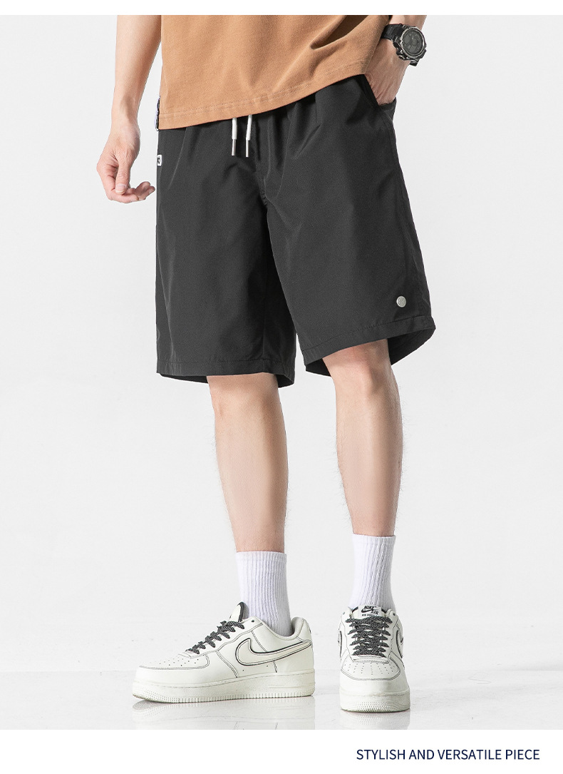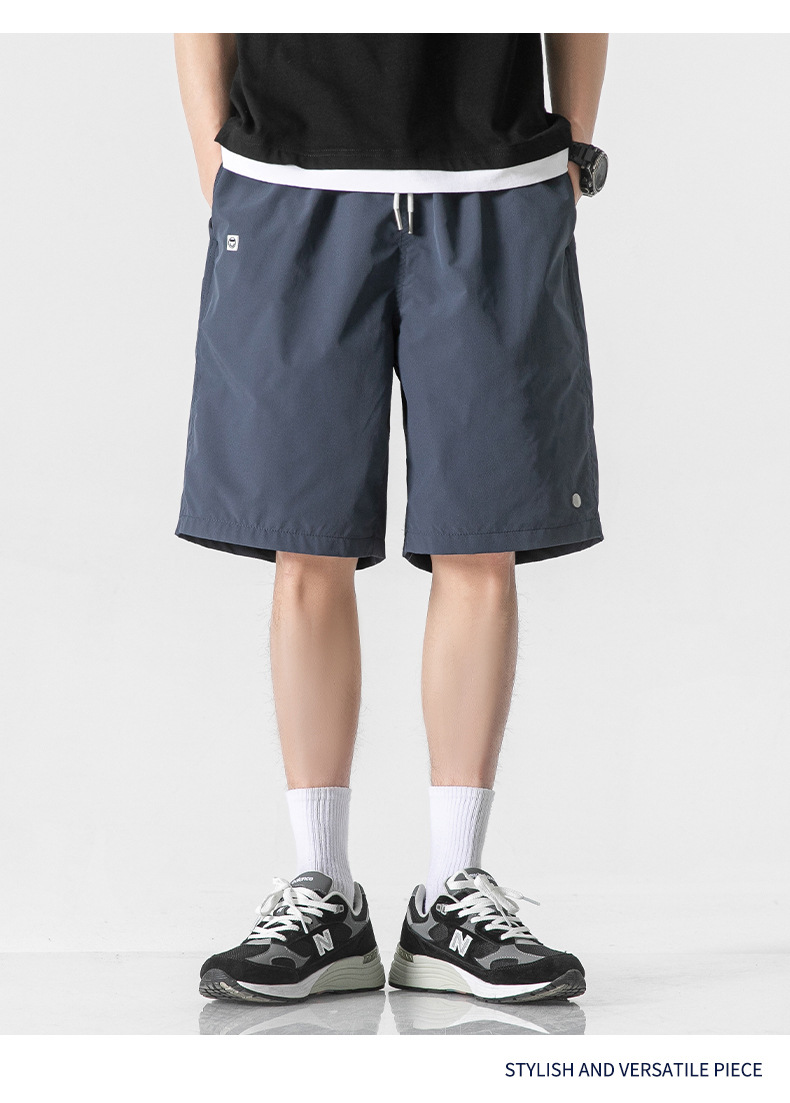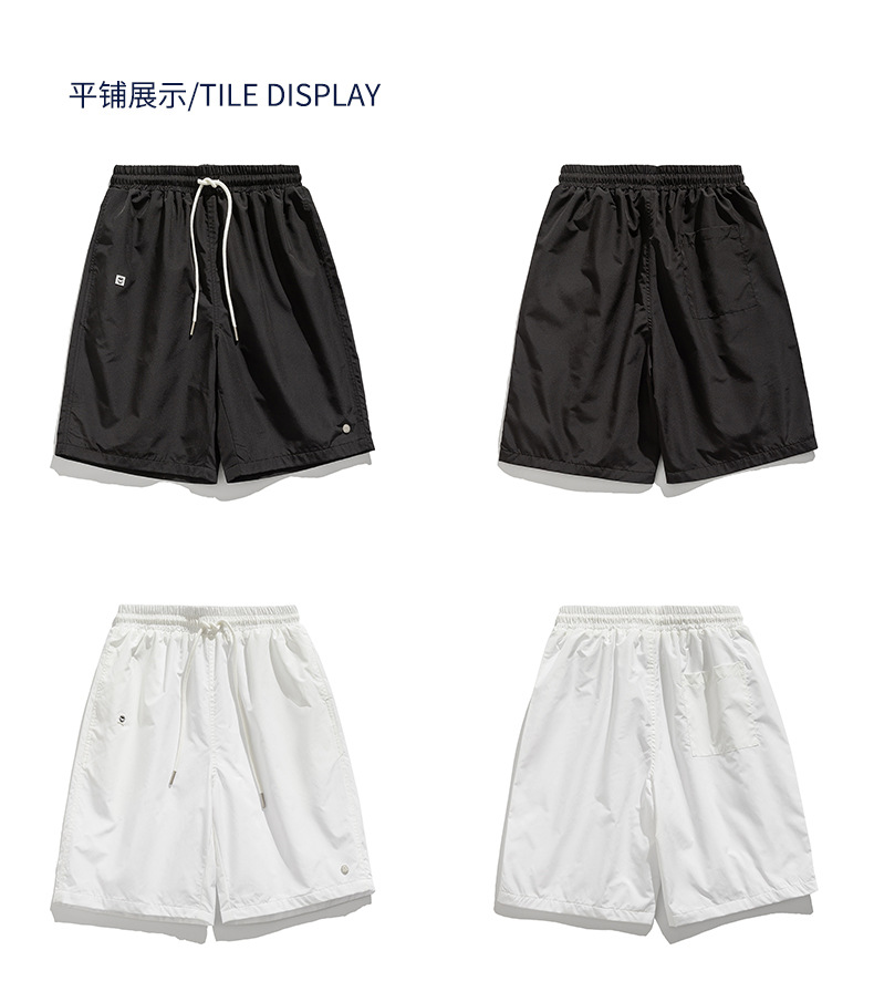 夏季新品冰丝速干短裤男日系潮牌简约百搭直筒薄款抽绳休闲五分裤