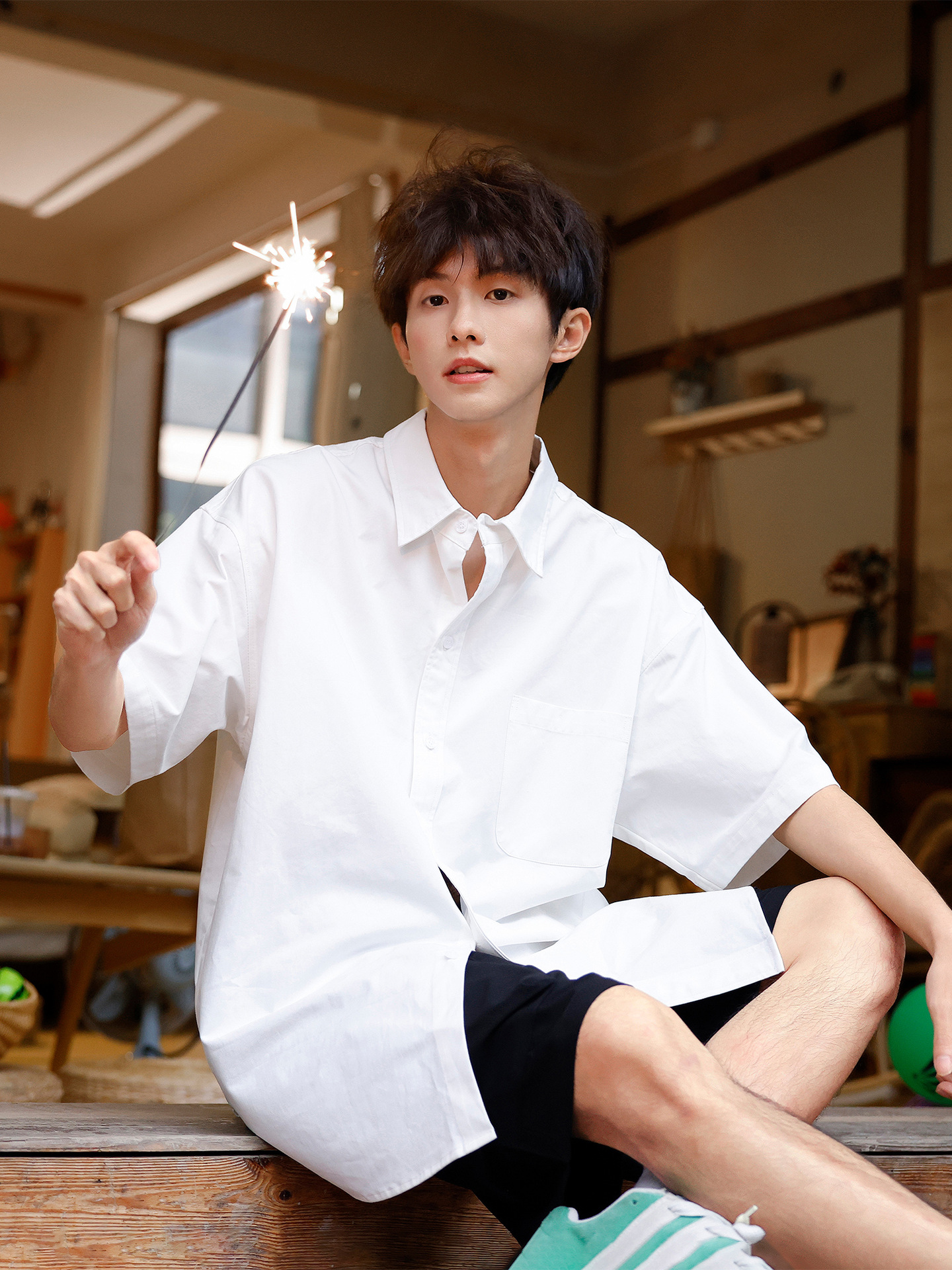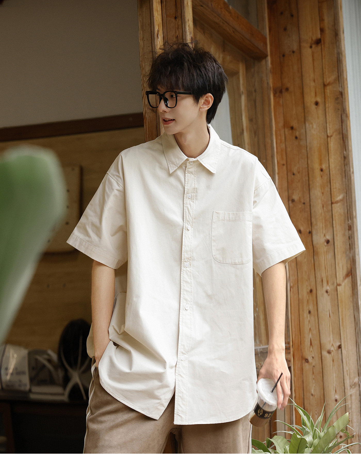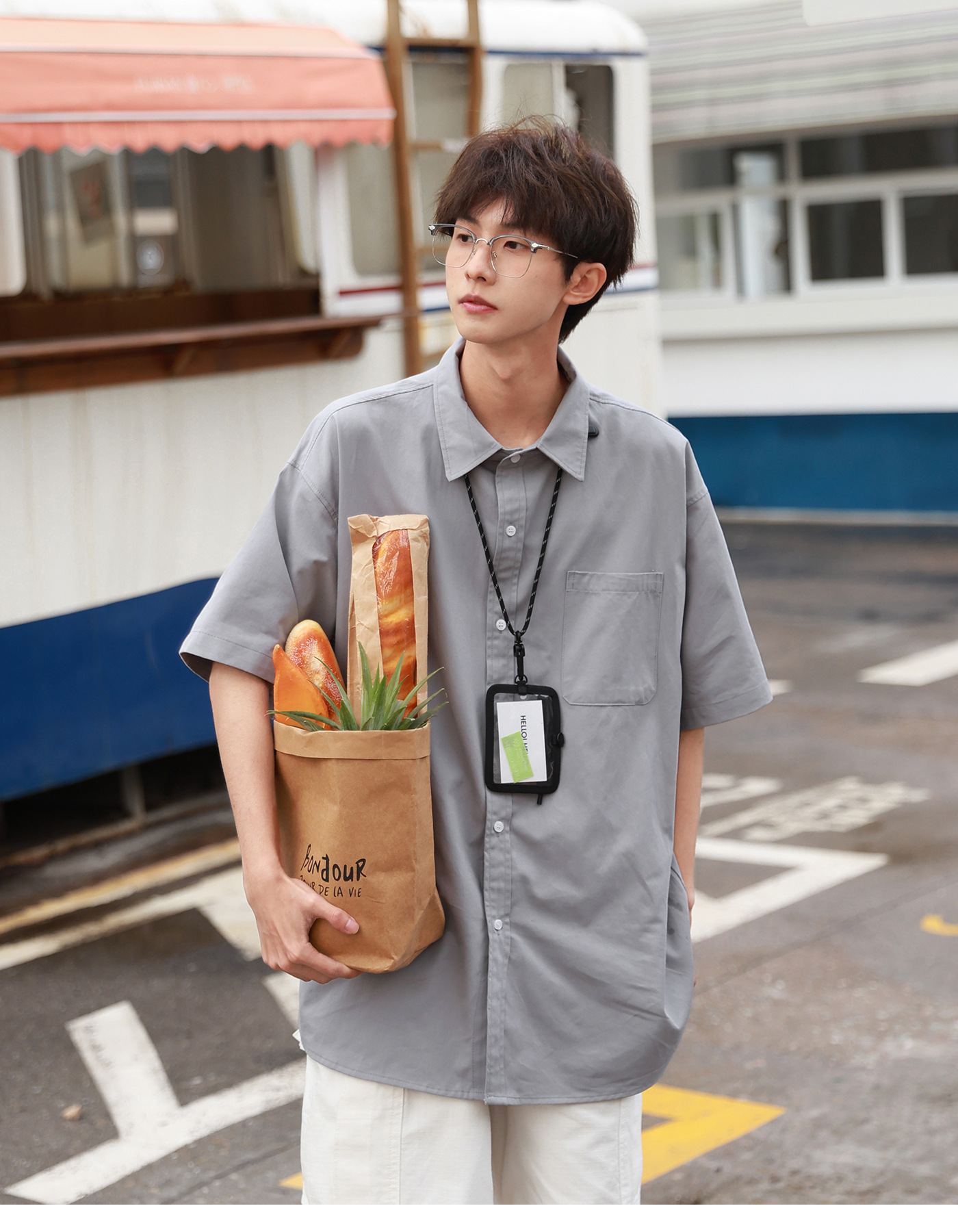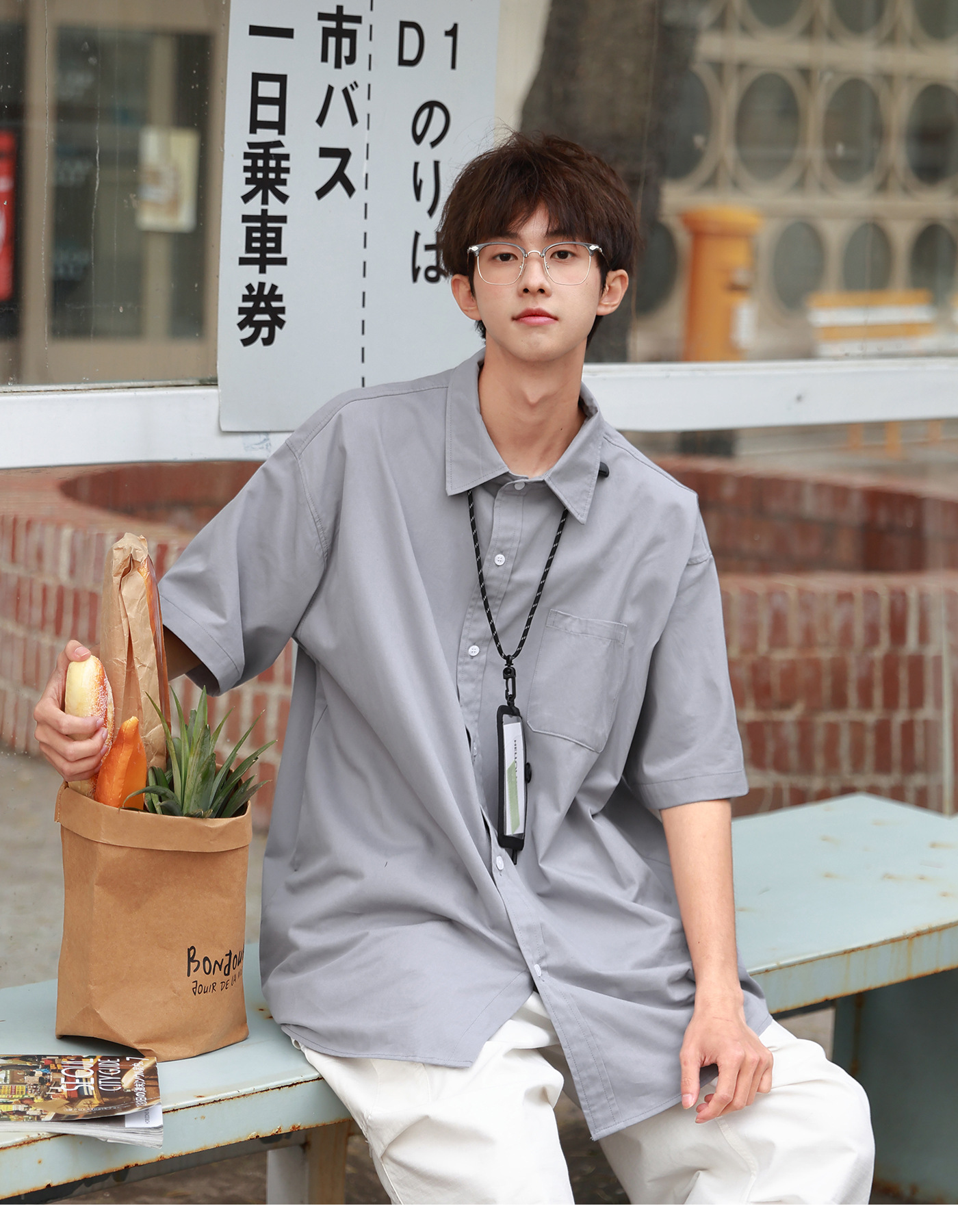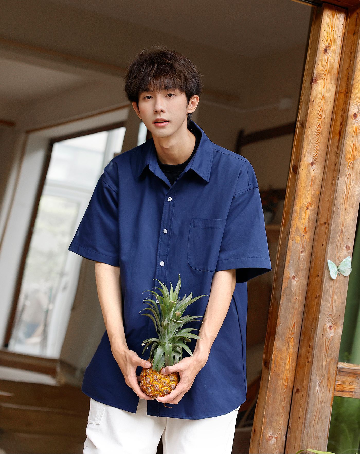 日系工装短袖衬衫男夏季新款青少年休闲翻领半袖衬衣外套上衣