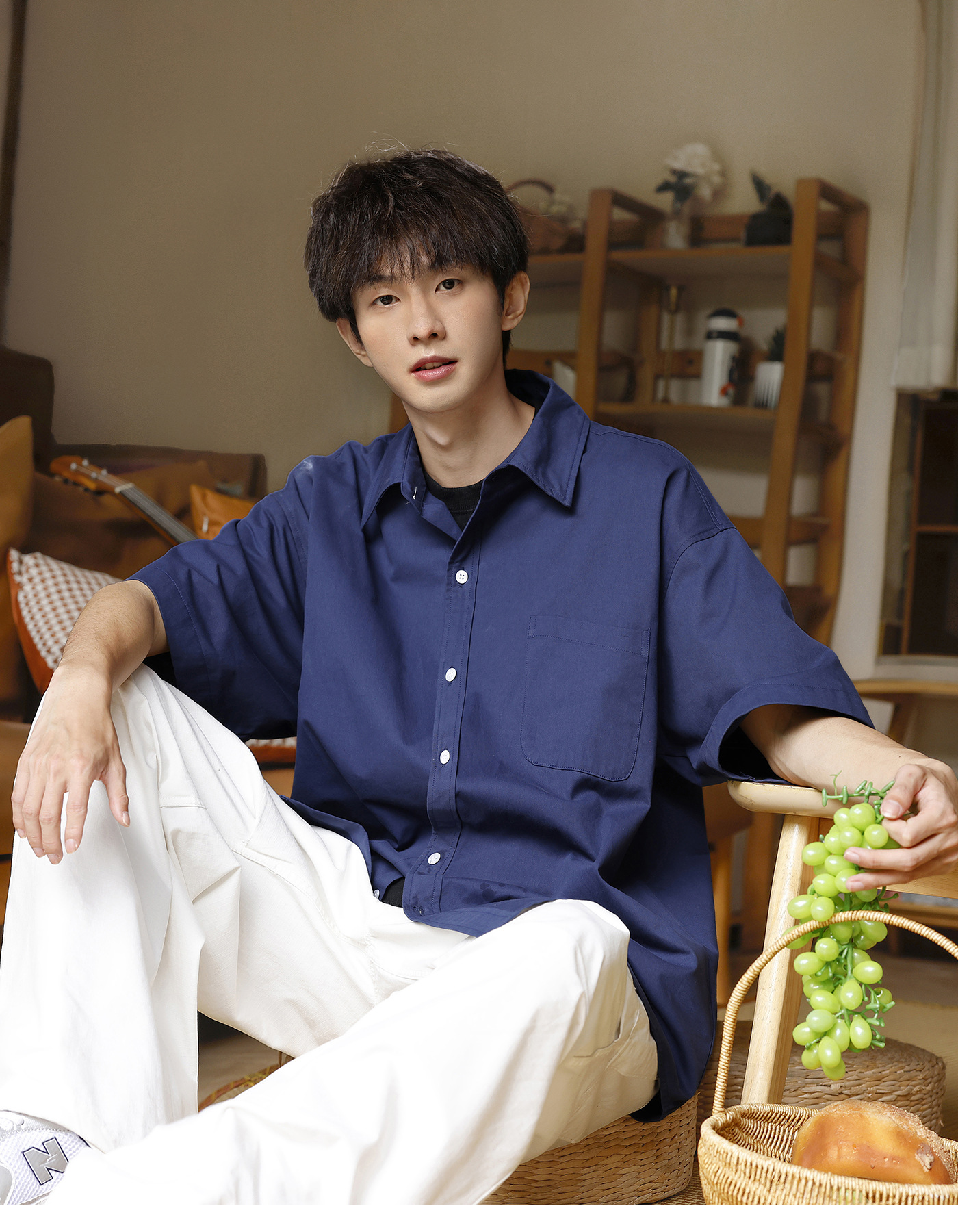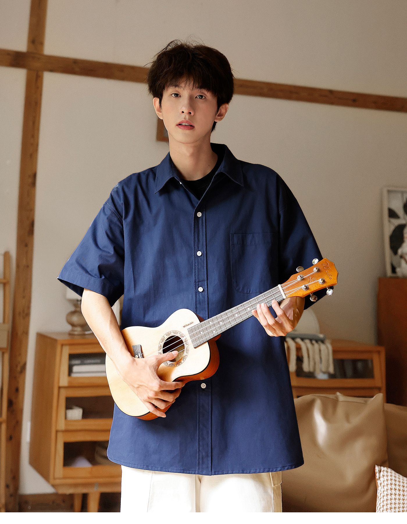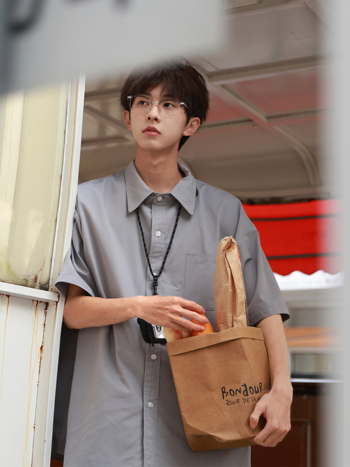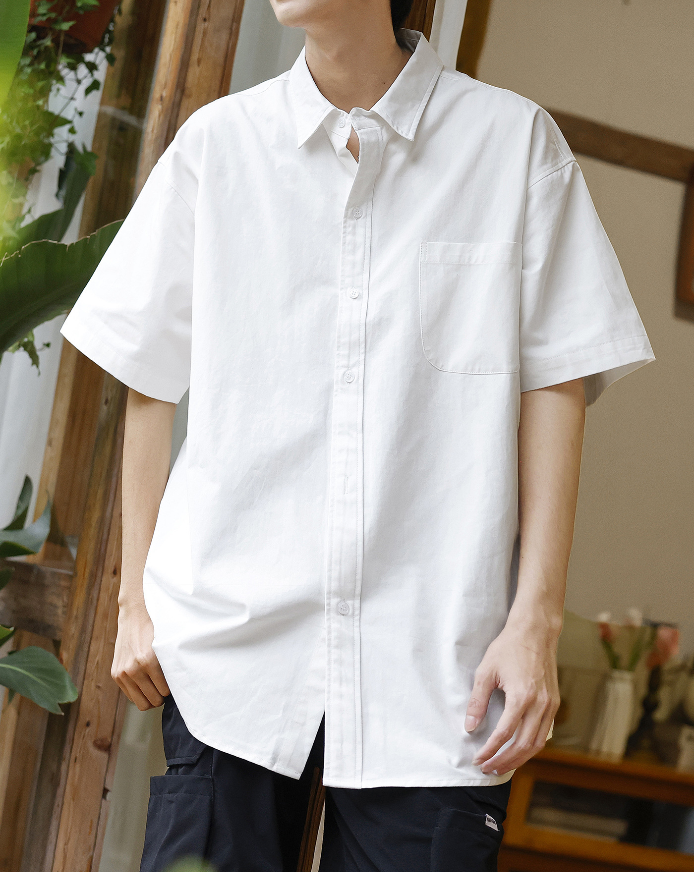 日系工装短袖衬衫男夏季新款青少年休闲翻领半袖衬衣外套上衣
