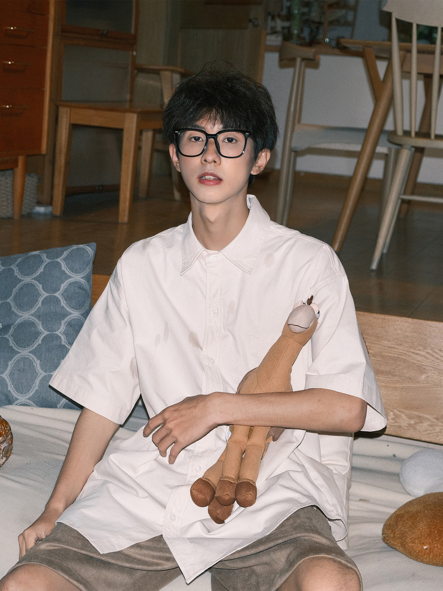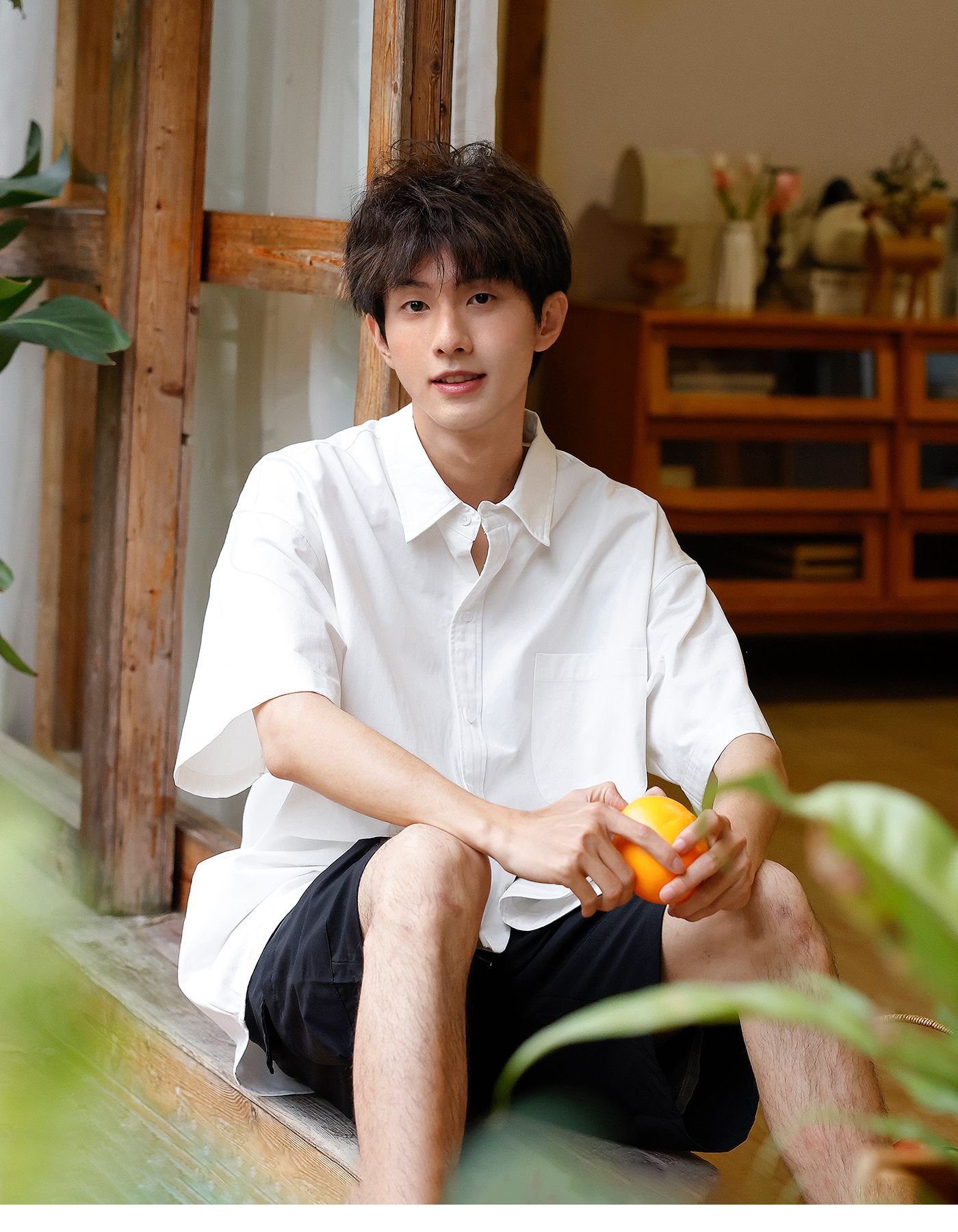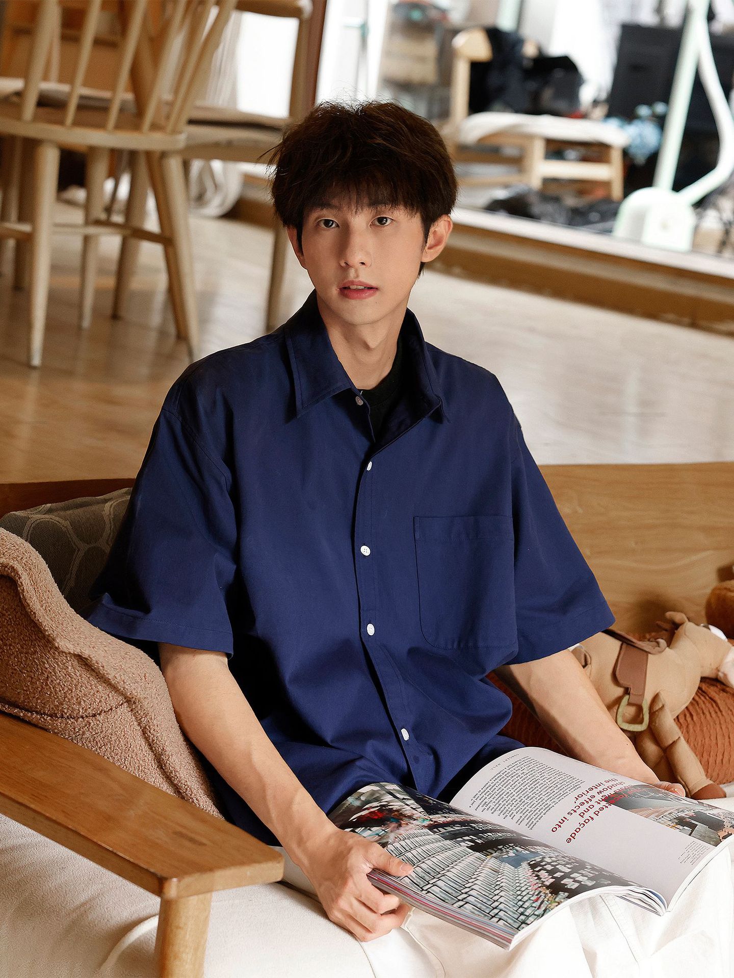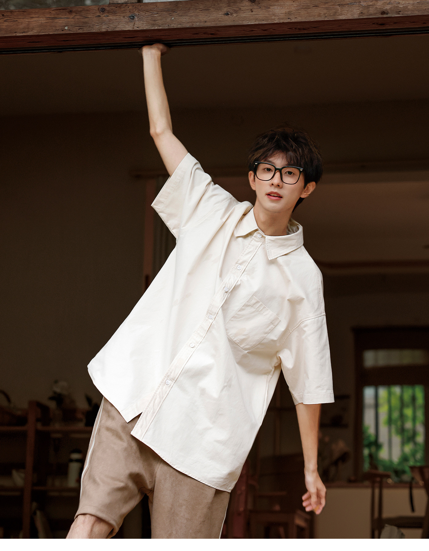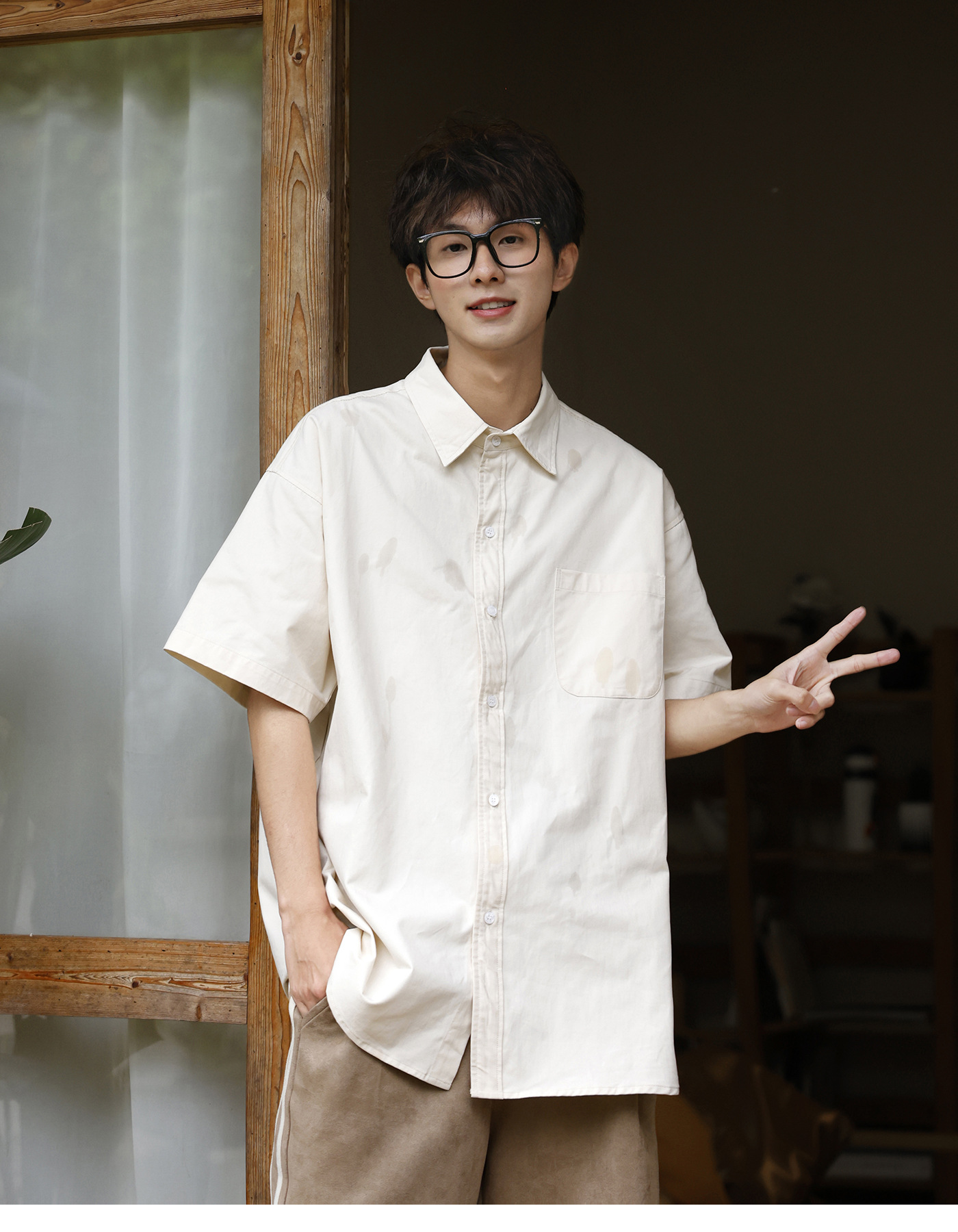日系工装短袖衬衫男夏季新款青少年休闲翻领半袖衬衣外套上衣