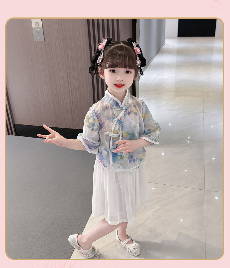 童装夏季新款儿童旗袍套装汉服古风民族风上衣裙子两件套