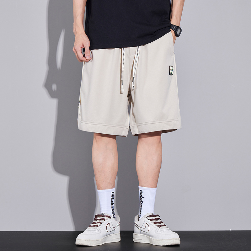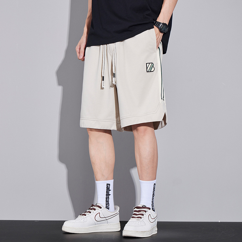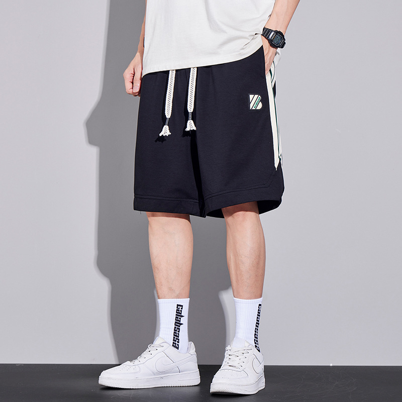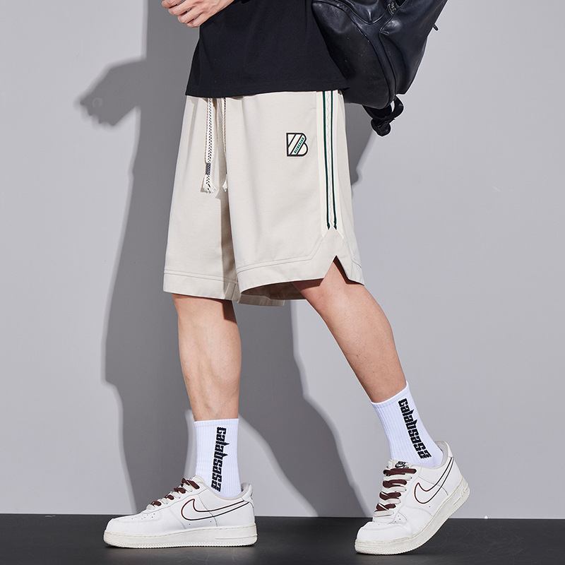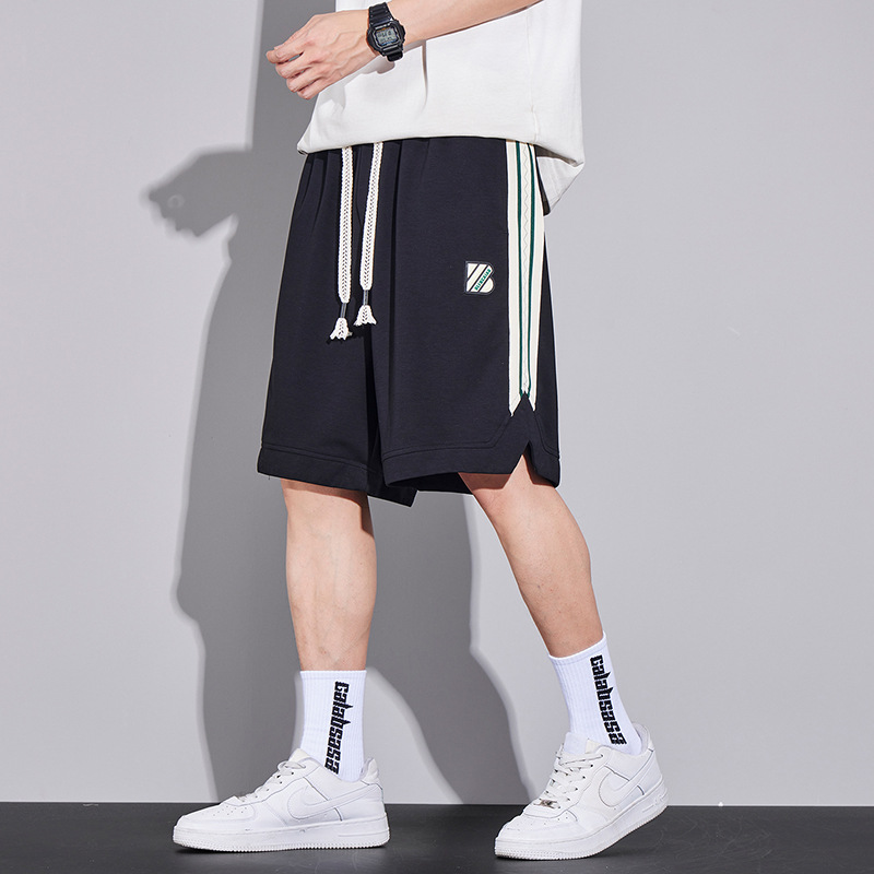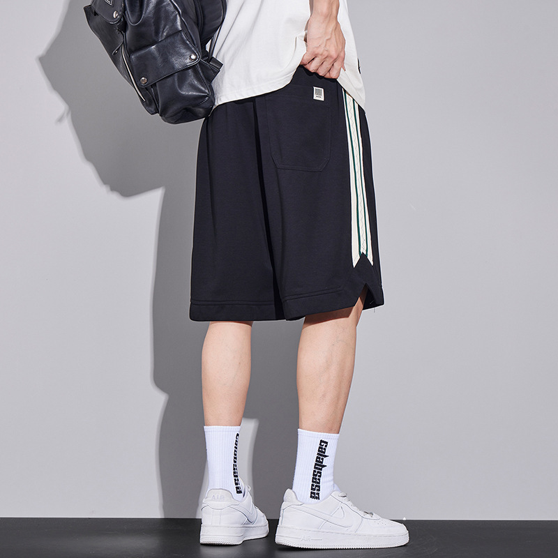 美式短裤夏季男款运动宽松条纹休闲松紧腰冰丝凉快五分裤子男夏天