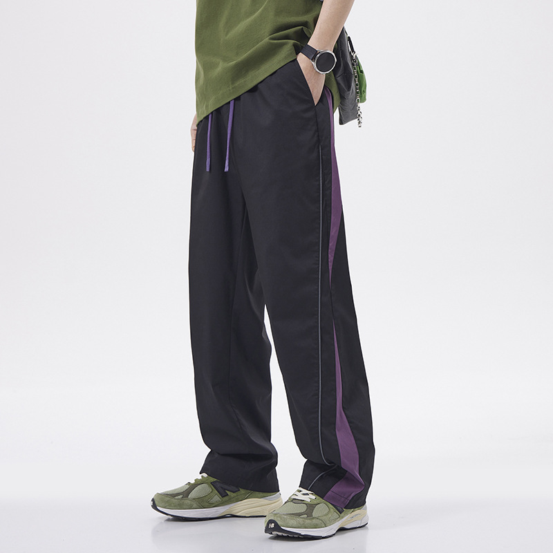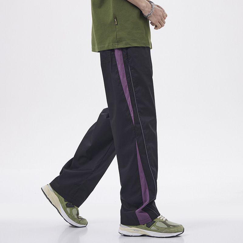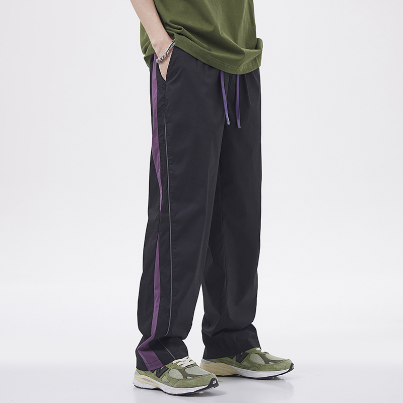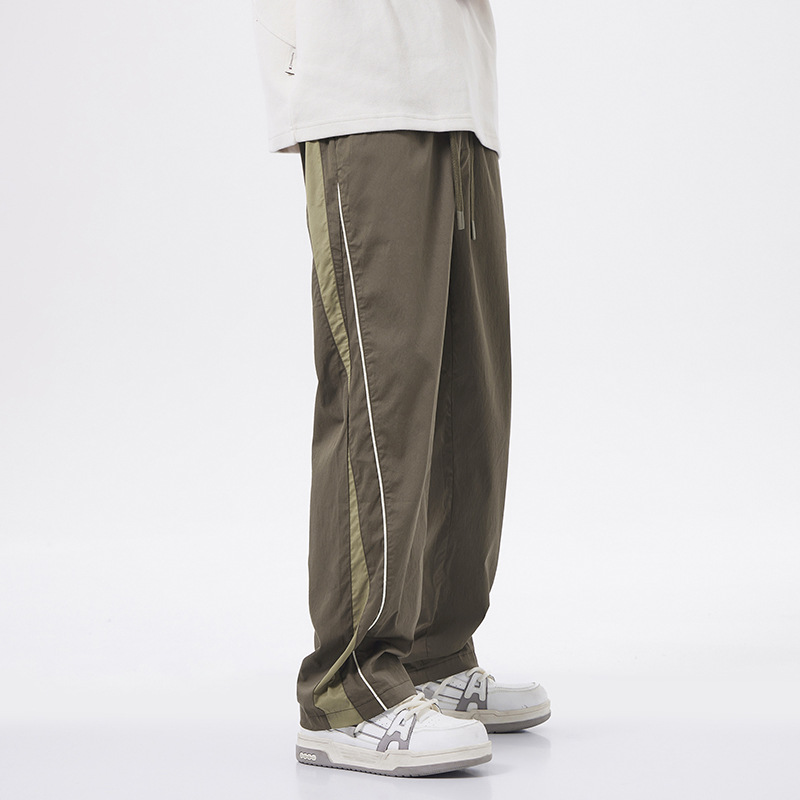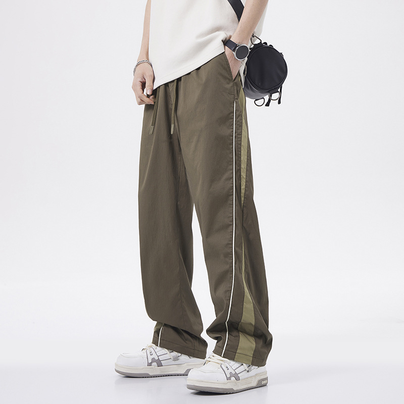 美式高街撞色拼接休闲裤男士夏季薄款速干宽松痞帅潮牌直筒工装裤