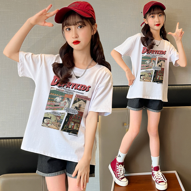 女童短袖上衣夏季新款韩版中大童衣服休闲宽松半袖卡通印花T恤潮
