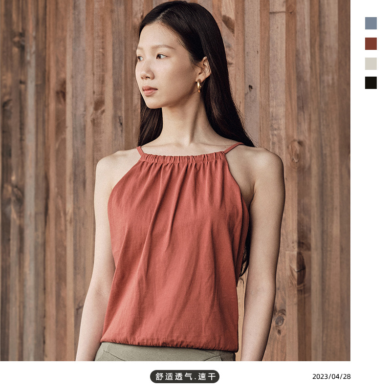夏季新款吊带背心带胸垫宽松简约清冷露脖运动上衣女普拉提训练