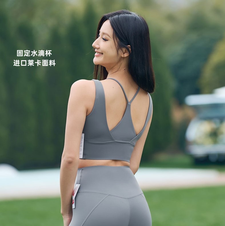 双肩带固定胸垫外穿瑜伽运动内衣抗震防下垂健身服女背心
