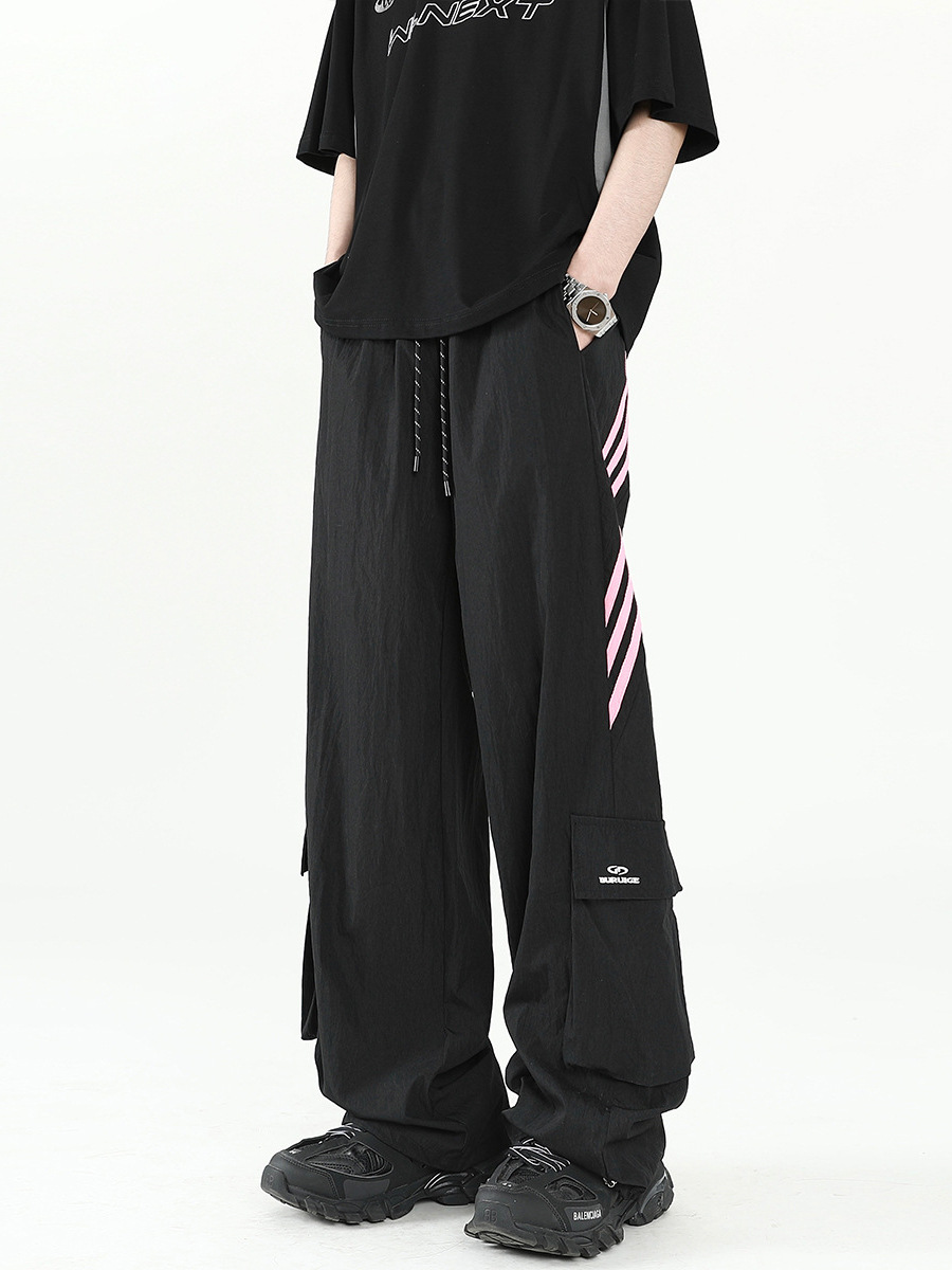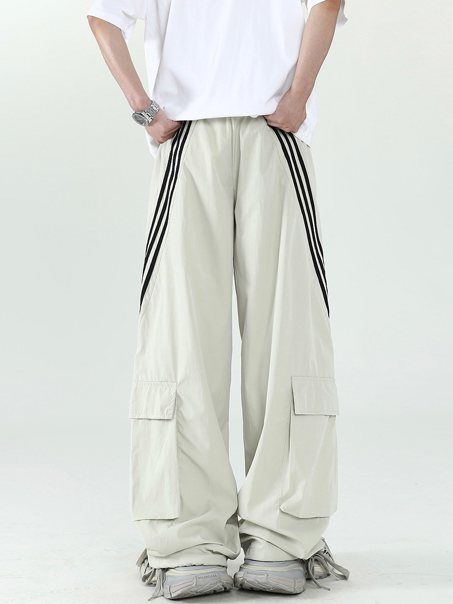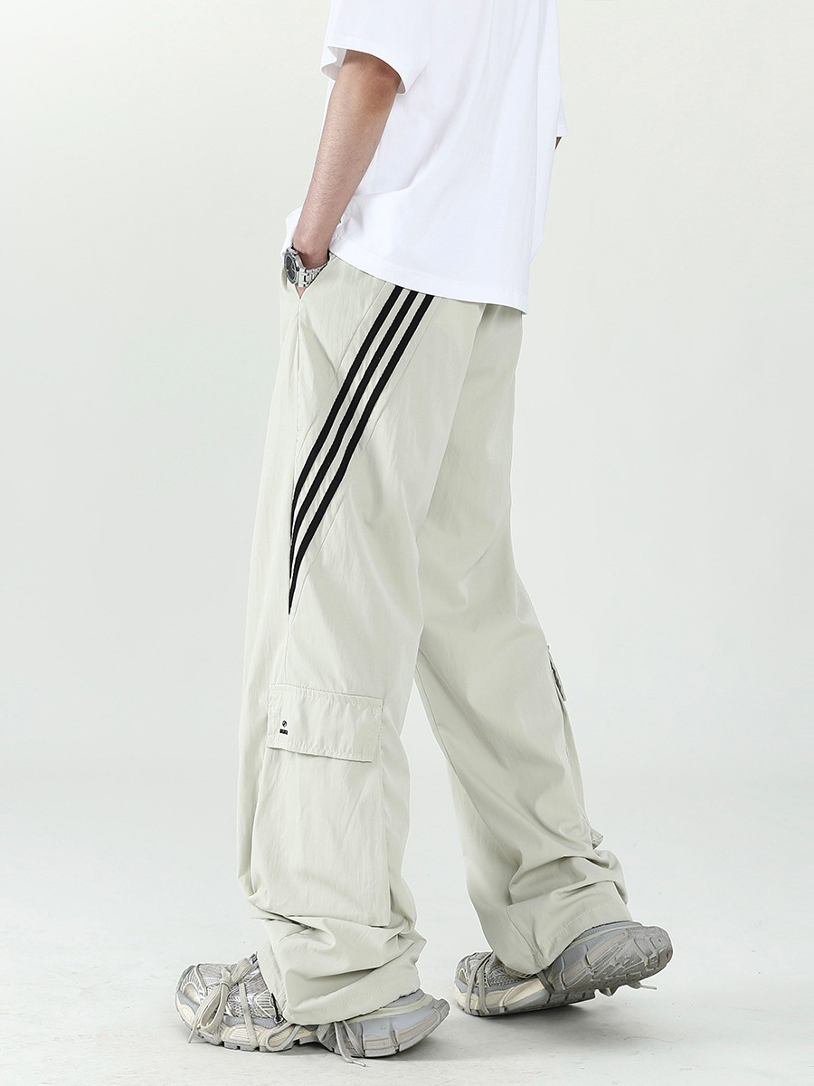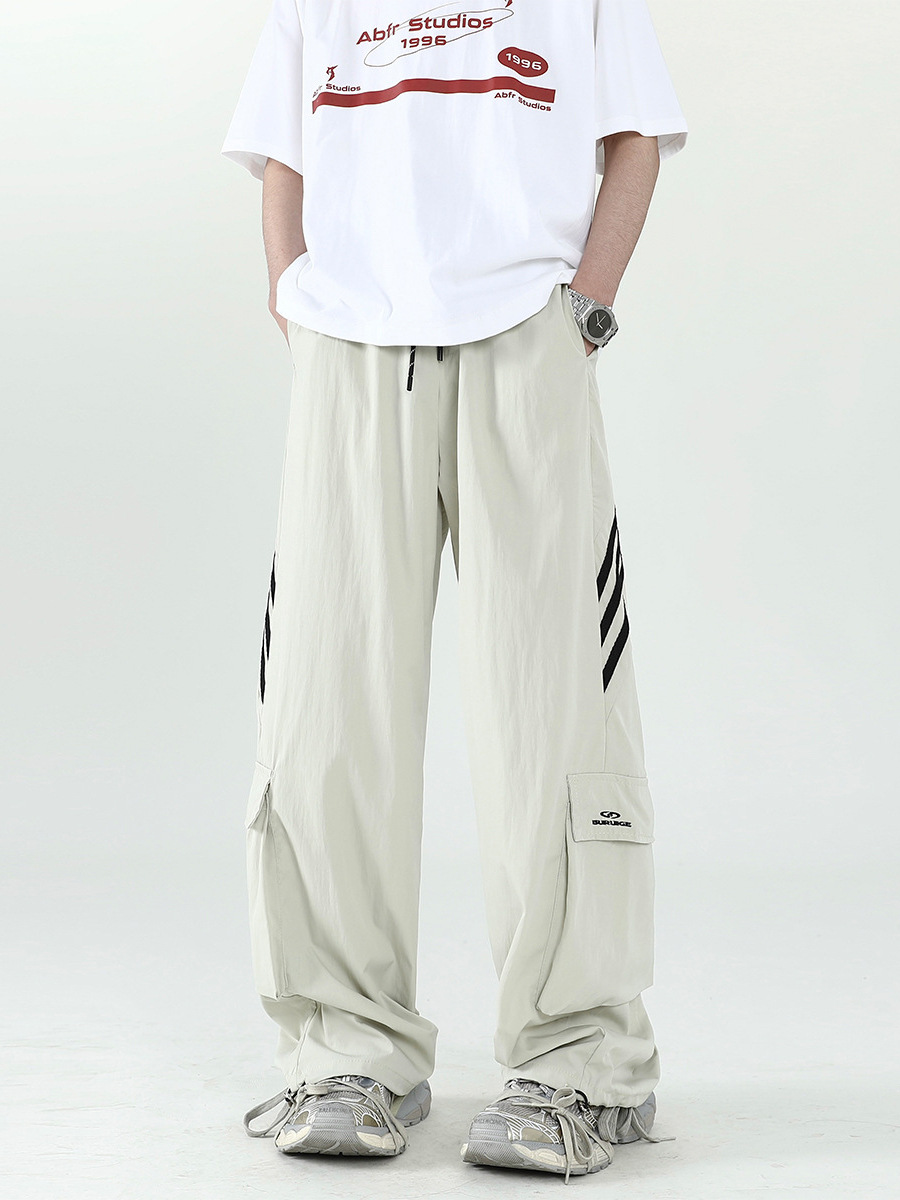 美式条纹速干冲锋裤男夏季潮牌拼接大口袋工装裤高街直筒速干长裤