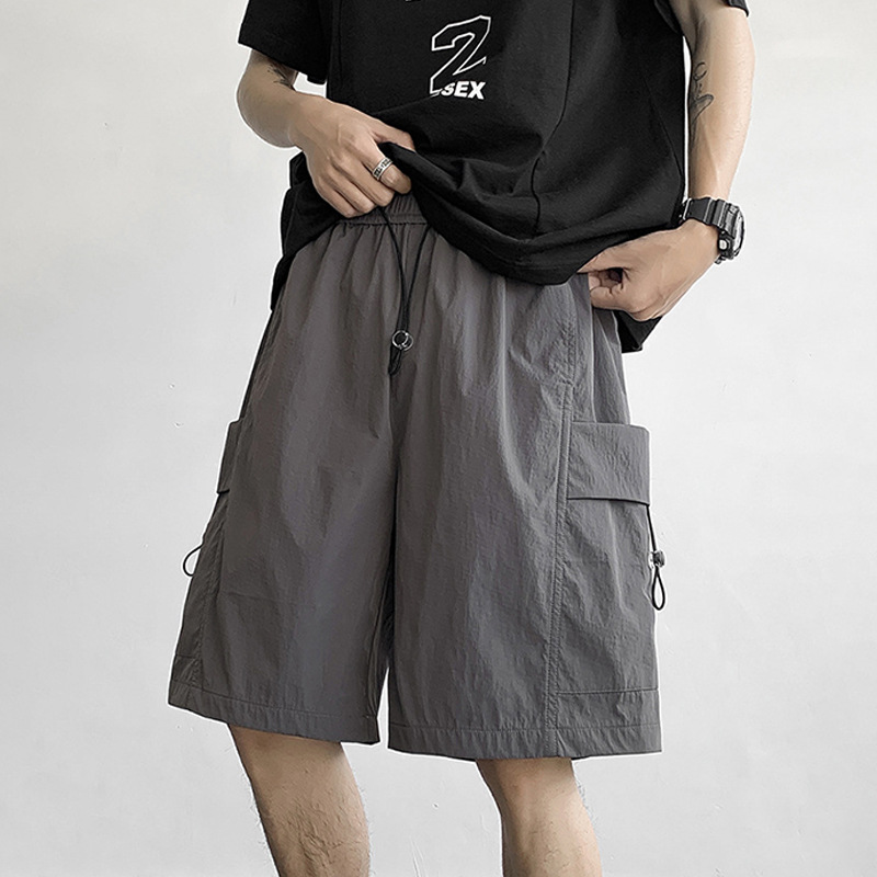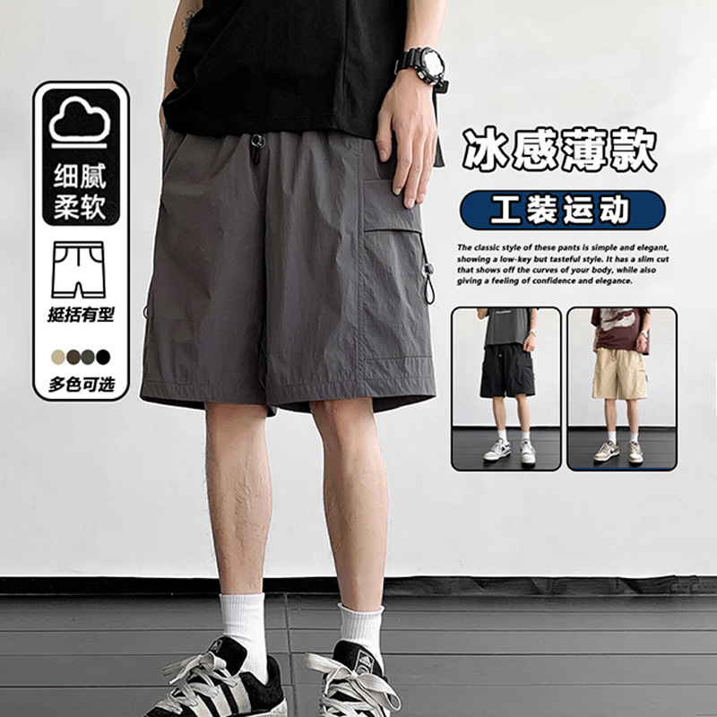 夏季新款休闲五分裤潮流多巴胺纯色宽松沙滩裤多口袋百搭裤子