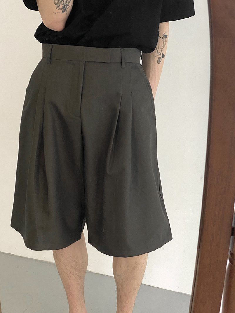 夏季西装短裤男宽松直筒高级感休闲五分裤男士韩版潮流垂坠感裤子