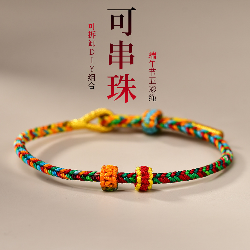 手工编织八股五彩绳红绳手链半成品可穿黄金转运珠DIY手绳调节款