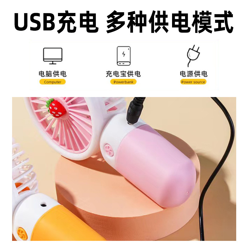 萌趣充电水果风扇便携式手机支架电风扇马卡龙搭配趣味水果小风扇