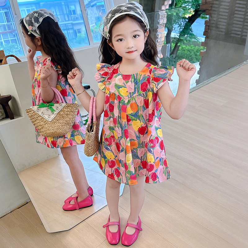 女童连衣裙夏季裙子女孩衣服碎花小飞袖公主裙背心裙宝宝夏装