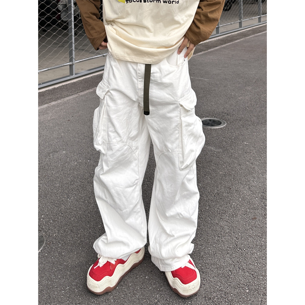 高级感设计多口袋休闲裤子男夏季美式复古宽松直筒垂感工装长裤子