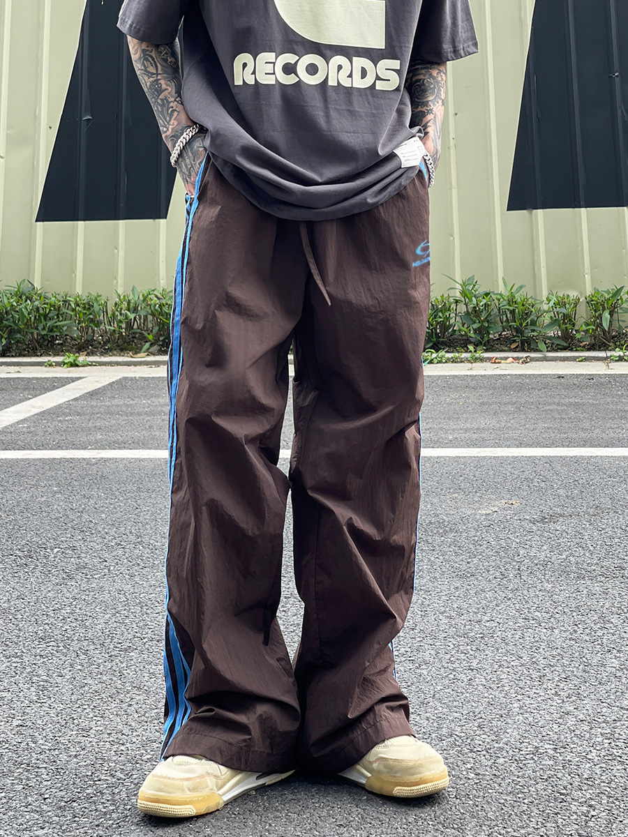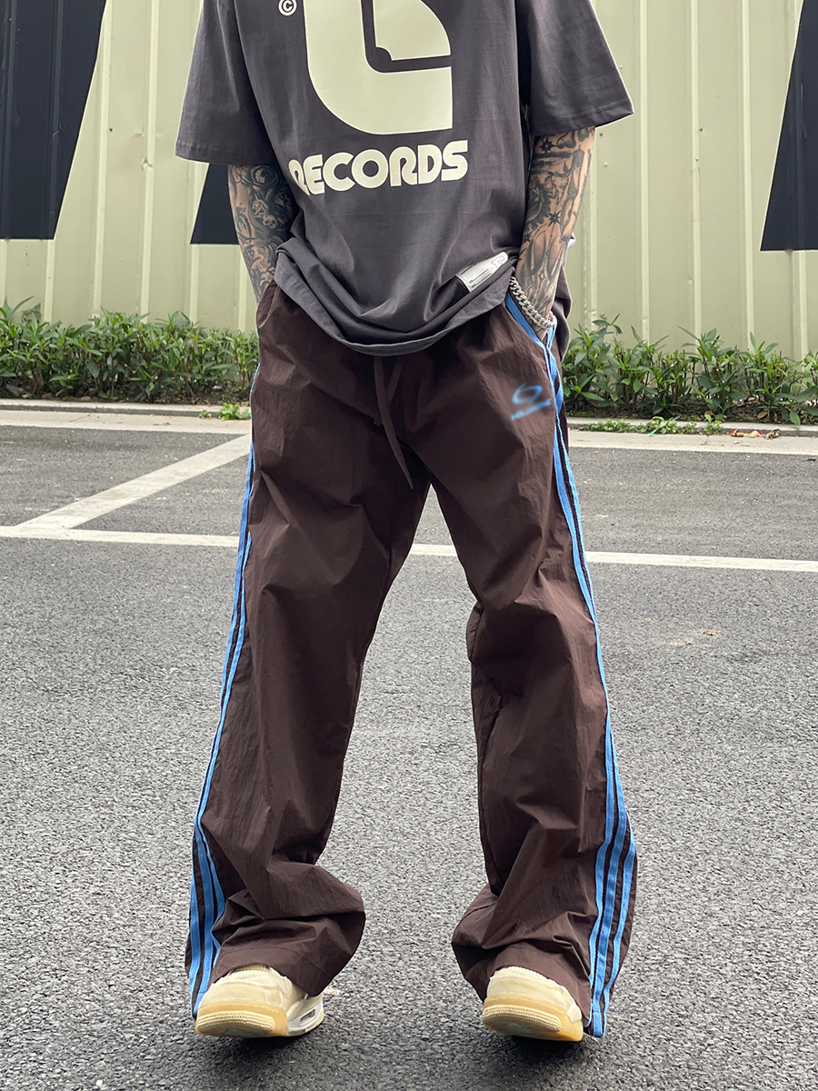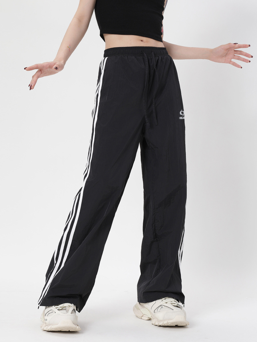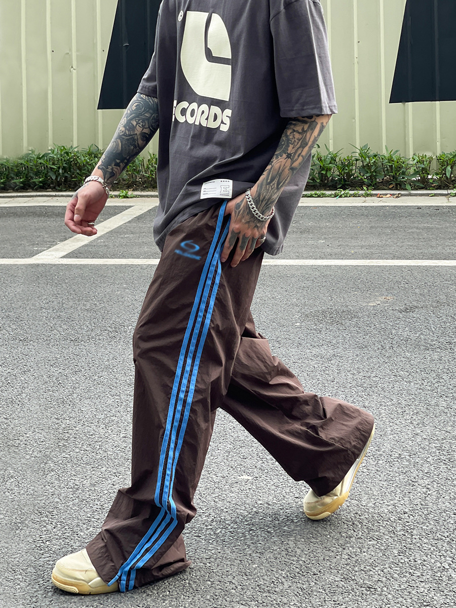 美式复古伞兵运动休闲裤男夏季新款速干三条杠阔腿街舞长裤子