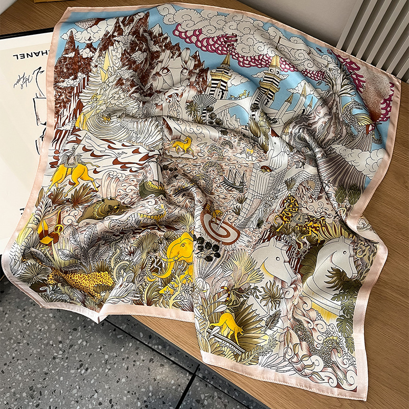 时尚轻奢真丝丝巾女新款春季高级感桑蚕丝70丝巾百搭素绉缎方巾