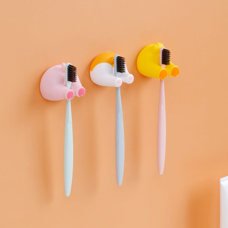 卡通动物牙刷置物架创意尾巴免打孔收纳架家用钥匙挂架门后挂钩