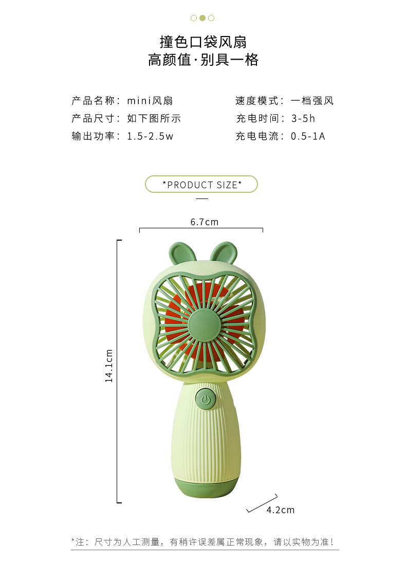 卡通手持小风扇便携易携带口袋小风扇USB大容量持久续航充电风扇