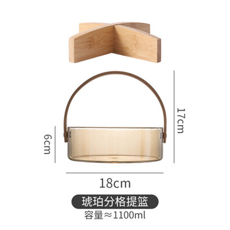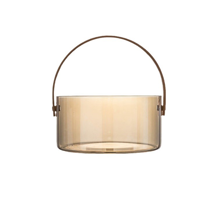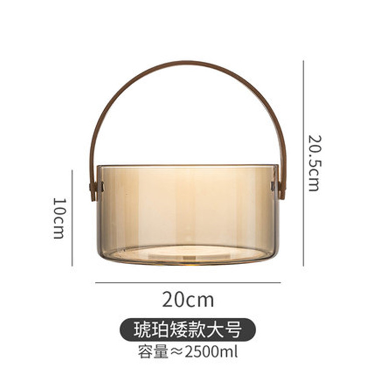 通轻奢手提篮玻璃水果盘沙拉干果盘家用简约客厅果酒桶冰桶
