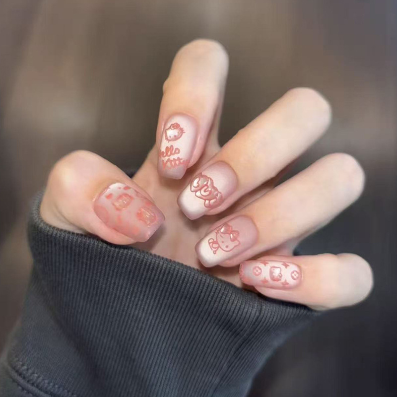 【磨砂粉KT】2025新款纯手工穿戴甲儿童卡通手绘可爱粉色 猫眼美甲