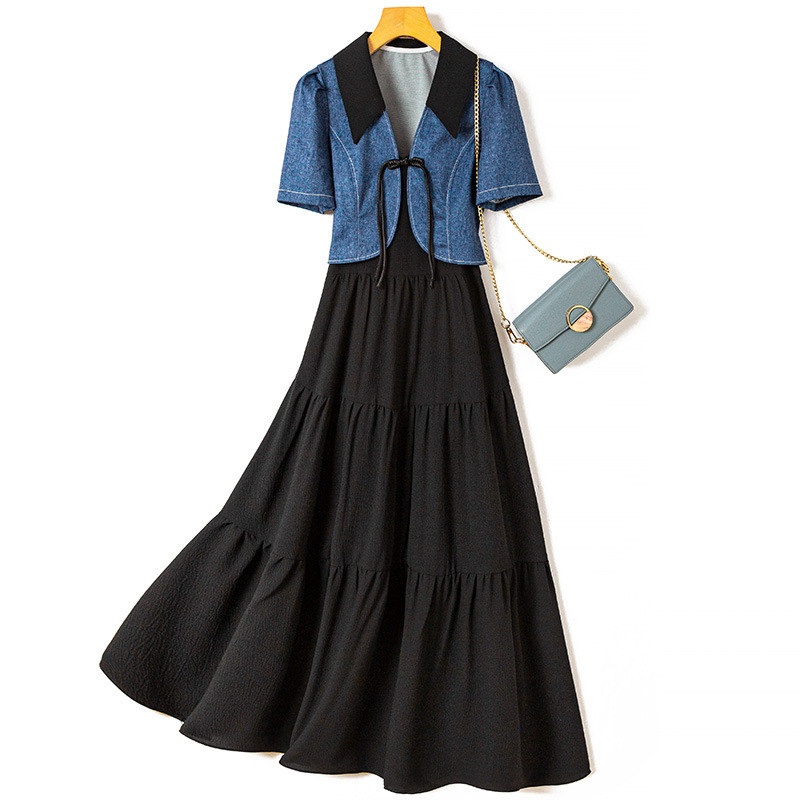 吊带连衣裙两件套女夏季新款小个子高级感流行牛仔套装裙7780