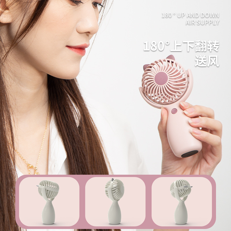 夏季可爱卡通手持小风扇便携式摇头usb充电小风扇可调角度