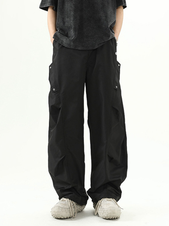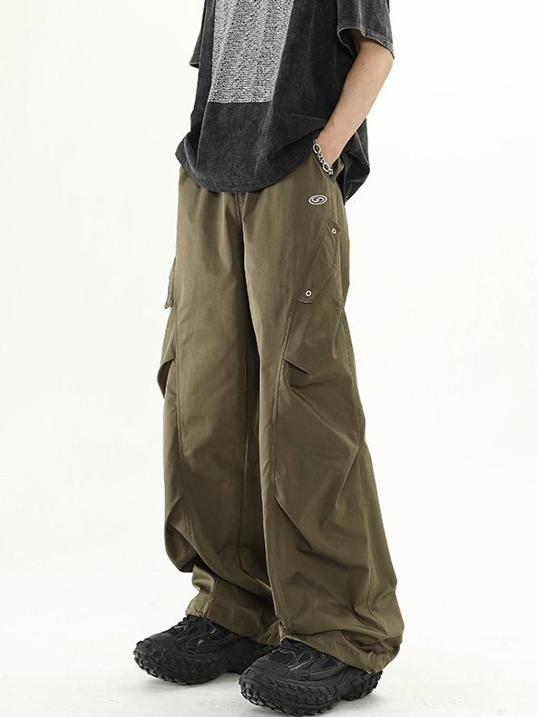 美式复古工装伞兵裤男夏季新款设计感阔腿裤宽松直筒休闲裤子