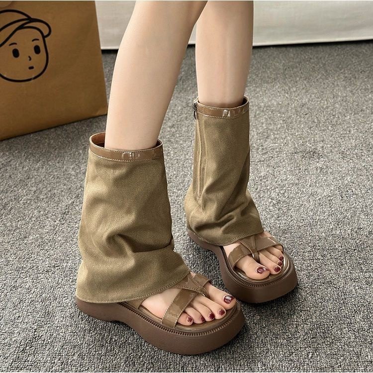 小众厚底增高小众罗马鞋2025夏新款凉鞋女夹趾复古凉靴短靴裤管靴