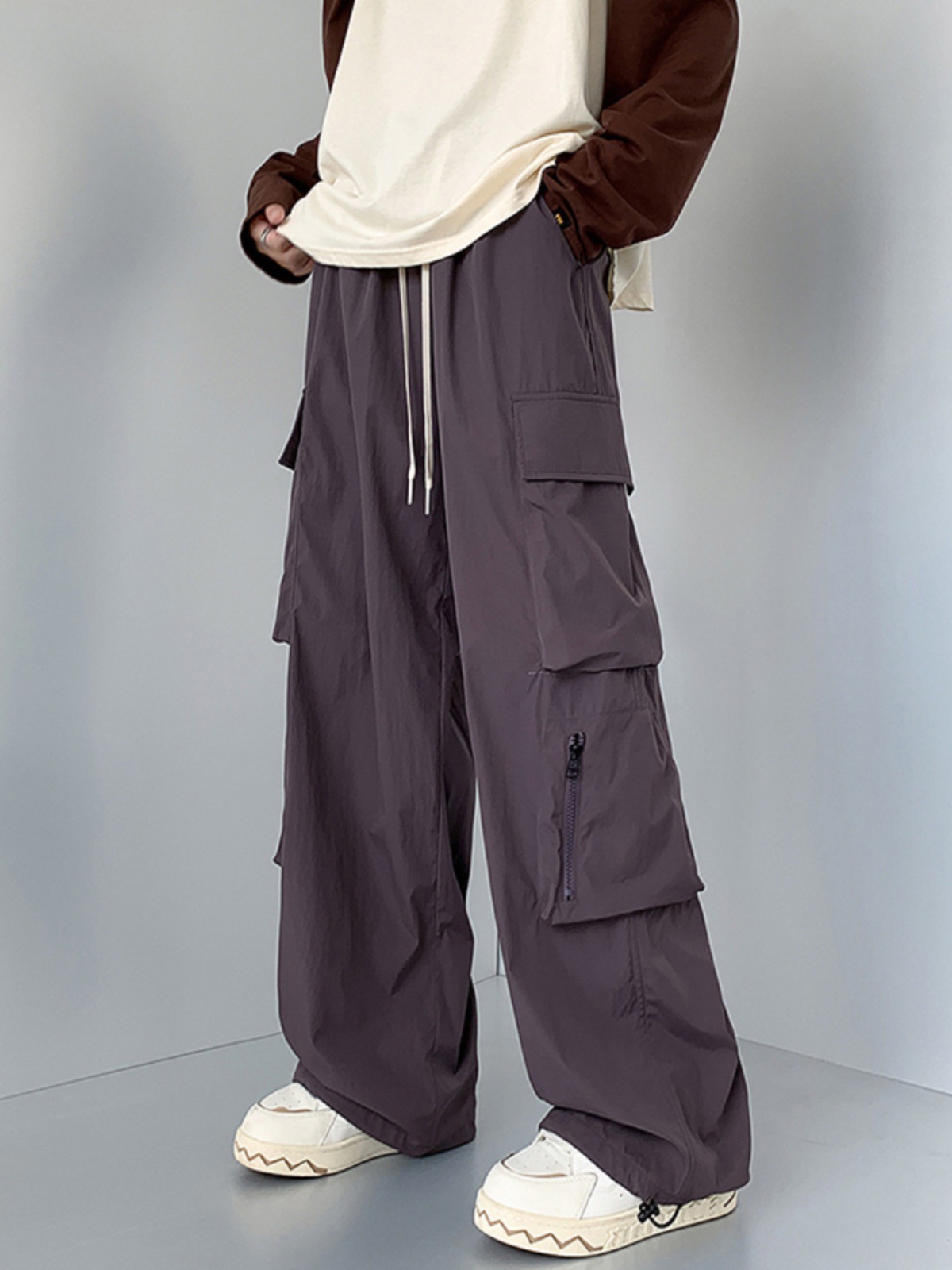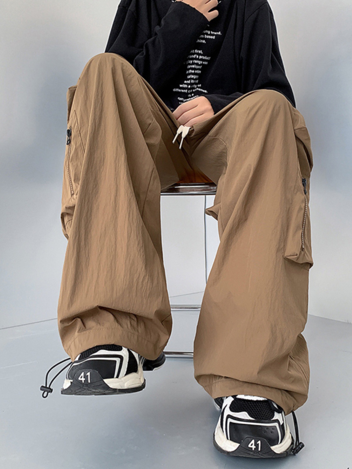 美式机能风工装休闲裤男夏季新款直筒阔腿束脚潮牌痞帅炸街冲锋裤